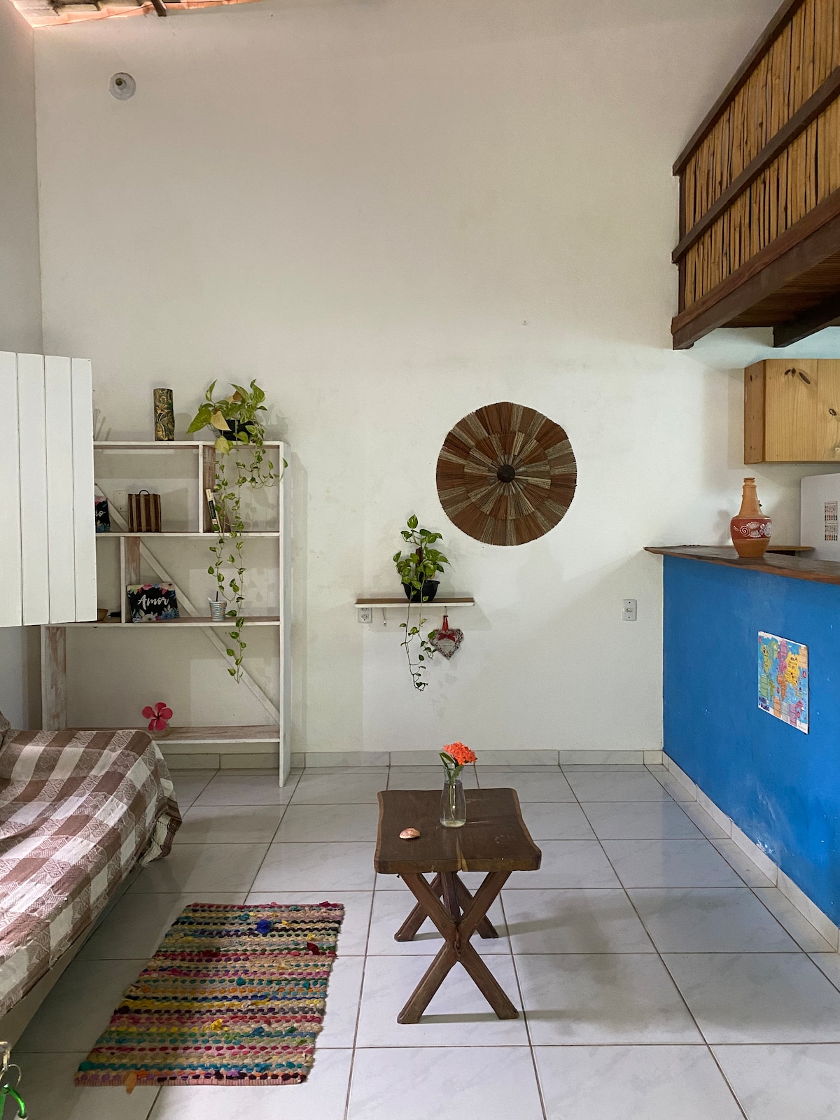 Nosso flat é bem amplo e espaçoso e rodeado pela natureza. Estamos localizados bem no meio da vila de Boipeba, pertinho de tudo . A suíte dispõem de uma cama de casal, uma cama de solteiro, banheiro privativo e temos uma cozinha funcional compartilhada no jardim . Temos uma deliciosa piscina com deck para você aproveitar e relaxar. Obs.: A piscina é para uso dos dois flats e de uma casa que está no mesmo espaço. Esqueça de suas preocupações neste lugar espaçoso e tranquilo.🌸