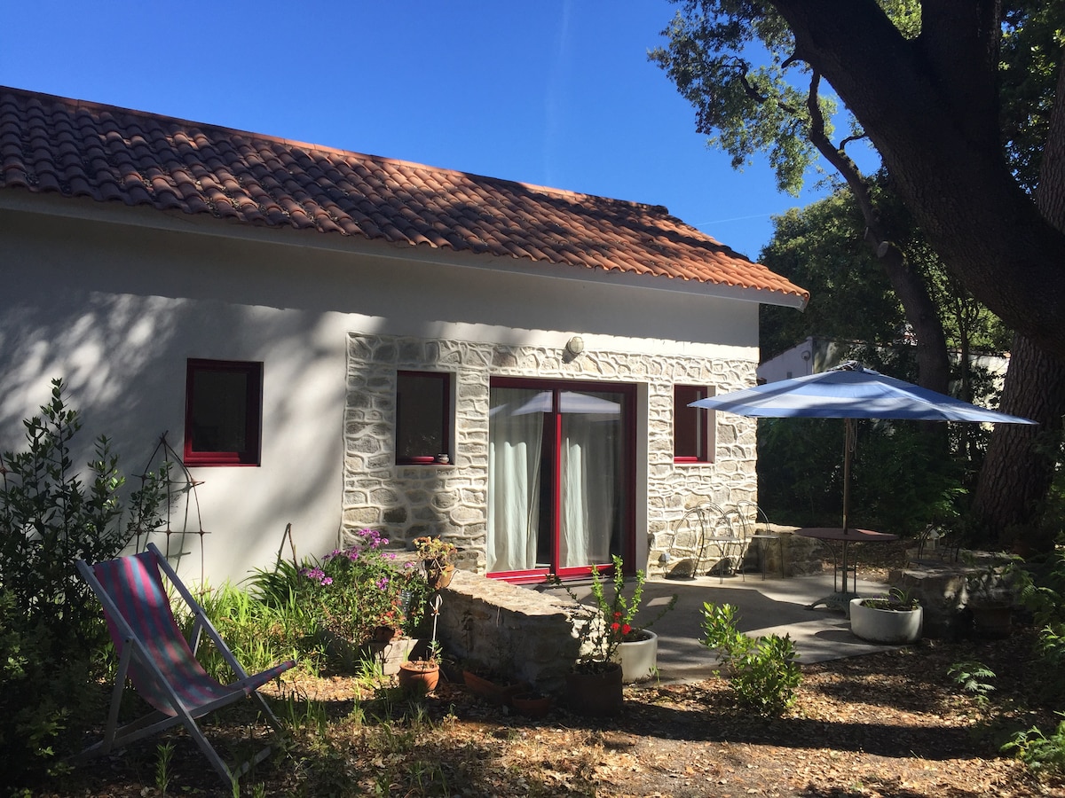 Maison rénovée dans le Bois de la Chaise (proximité plage des Dames). RDC: cuisine équipée ouverte sur salon, 1 chambre (2 lits simples et un dressing), salle de douche, WC. Mezzanine (accès échelle de meunier, déconseillé aux enfants): 1 lit double. Tout confort: lave linge, lave vaisselle, micro-ondes, terrasse, salon de jardin. La maison est située sur un grand terrain boisé (2500m2), je vis dans une autre maison située au fond du terrain.