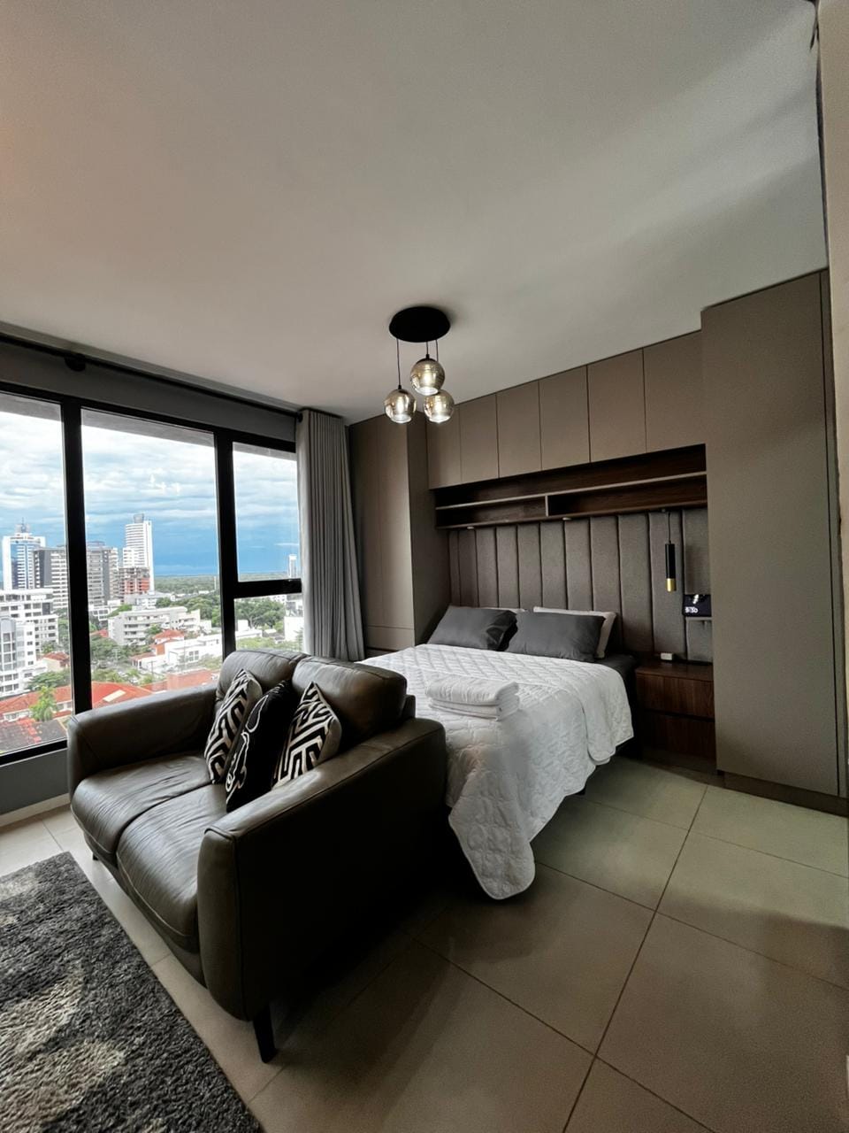 Estudio de lujo ubicado en el exclusivo Sky Elite, ofrece un espacio tranquilo y elegante. Con muchas comodidades, es perfecto para una estancia de placer y/o negocios, a metros de Av. San Martín con cafeterías, comercios, bares, restaurantes, tiendas, hoteles, Western U Cuenta con cama para 2, sofà cama, cocina, baño privado, walking closet, TV smart, A/C, amenities incluyen sala de juegos con billar, cine, churrasqueras, business center, cowork, gym, piscina, sauna seco, a vapor y jacuzzi
