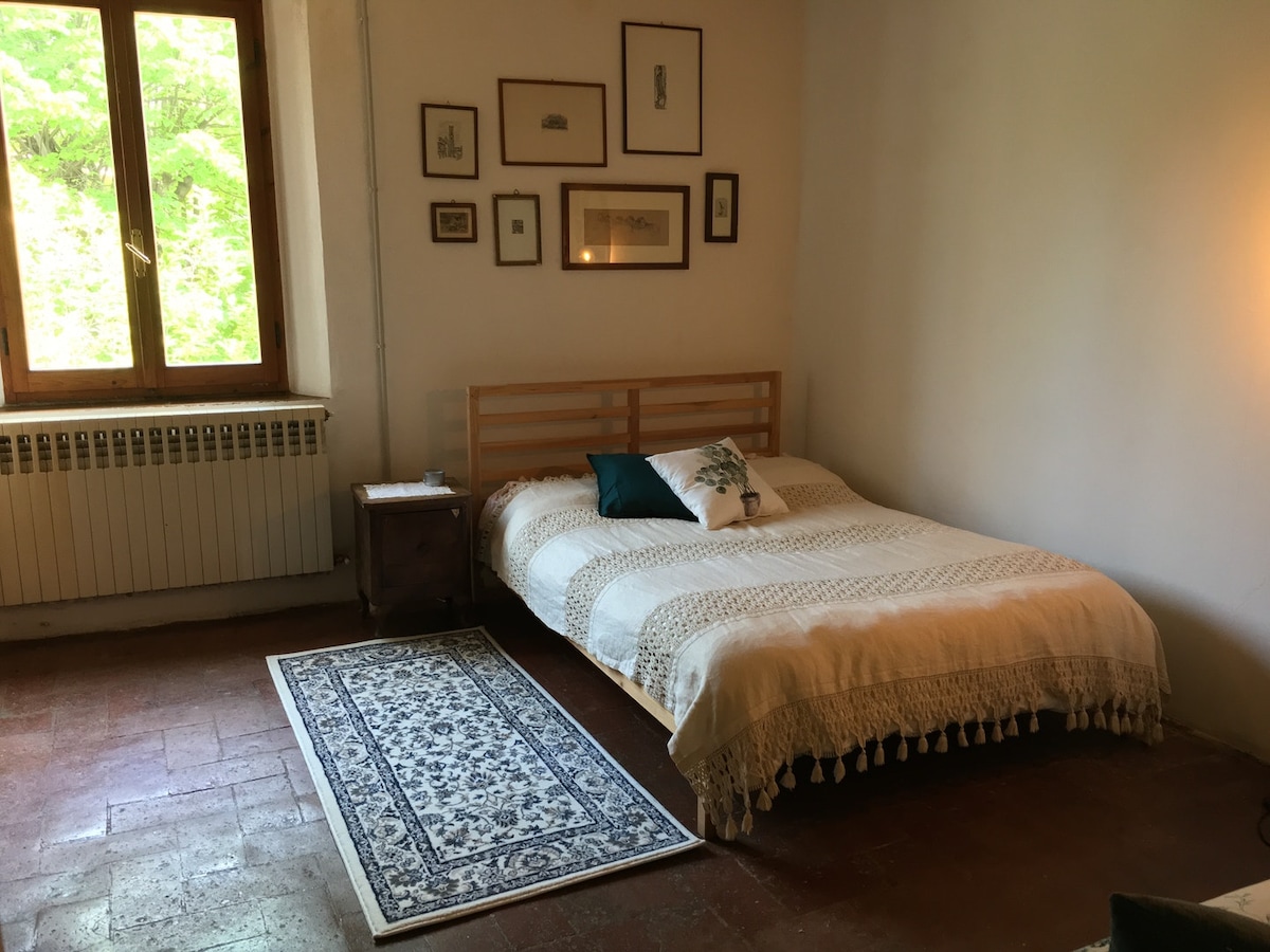 Fifteen minutes from highway, half an hour from Bologna or Modena, lovely room for two in a medieval village restored old house (bathroom shared with owner). Beautiful view on Apennine hills from room and terrace. Situated inside protected Regional Park. Special breakfast with a variety of organic home made jams, and warm welcome to all guests.