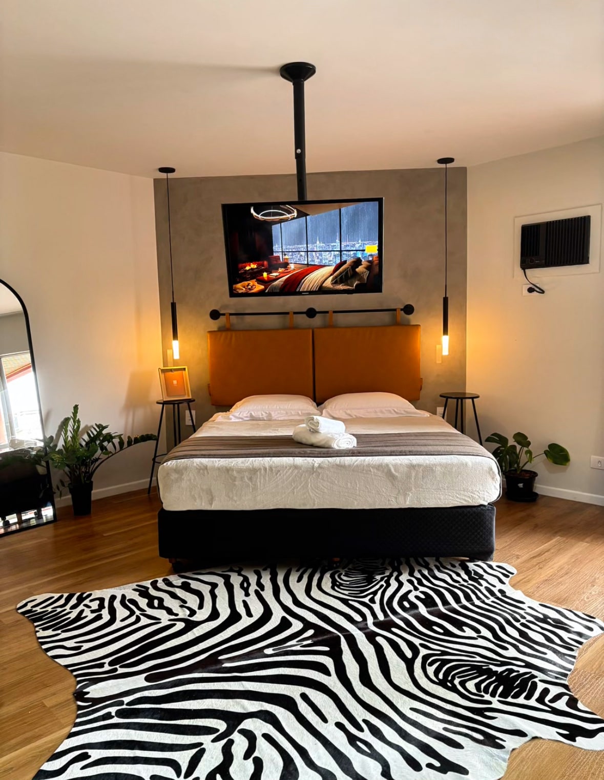 Criamos esse espaço encantador para que você tenha uma experiência memorável em Curitiba. Localizado na entrada do parque Jardim Botânico e perto da UFPR e FIEP. Acomoda até 2 pessoas com bastante conforto. Ambiente aconchegante com: - ar cond quente/frio - quarto, sala e cozinha integrados - CAMA KING - smartTV - wifi - tábua/ferro de passar - secador de cabelo - frigobar - cofre - roupas de cama, toalhas, travesseiros e cobertas - vaga ESTACIONAMENTO em terreno fechado ao lado do studio