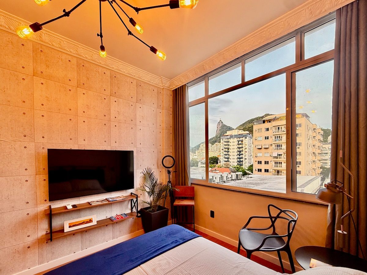 Este lugar único tem um estilo próprio, acabou de ser reformado, vista lindinha para o Cristo Redentor, rústico e simples ao mesmo tempo que confortável. Terracinho agradável com Ofuro, churrasqueira e espaço gourmet. Suíte principal ampla com banheira de hidromassagem Cozinha integrada a sala, sensação agradável de amplitude. No coração de Copacabana, perto do metrô, comércio, supermercados e a uma quadra da praia.