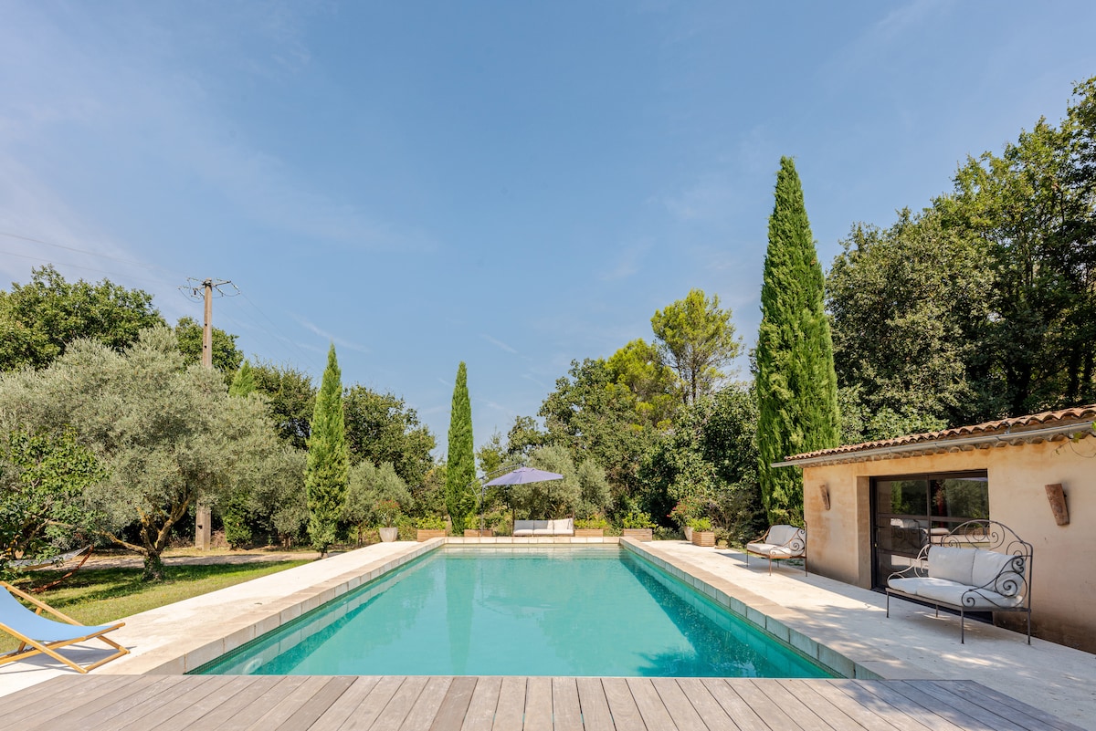 普罗旺斯农舍内的带天然游泳池的度假屋