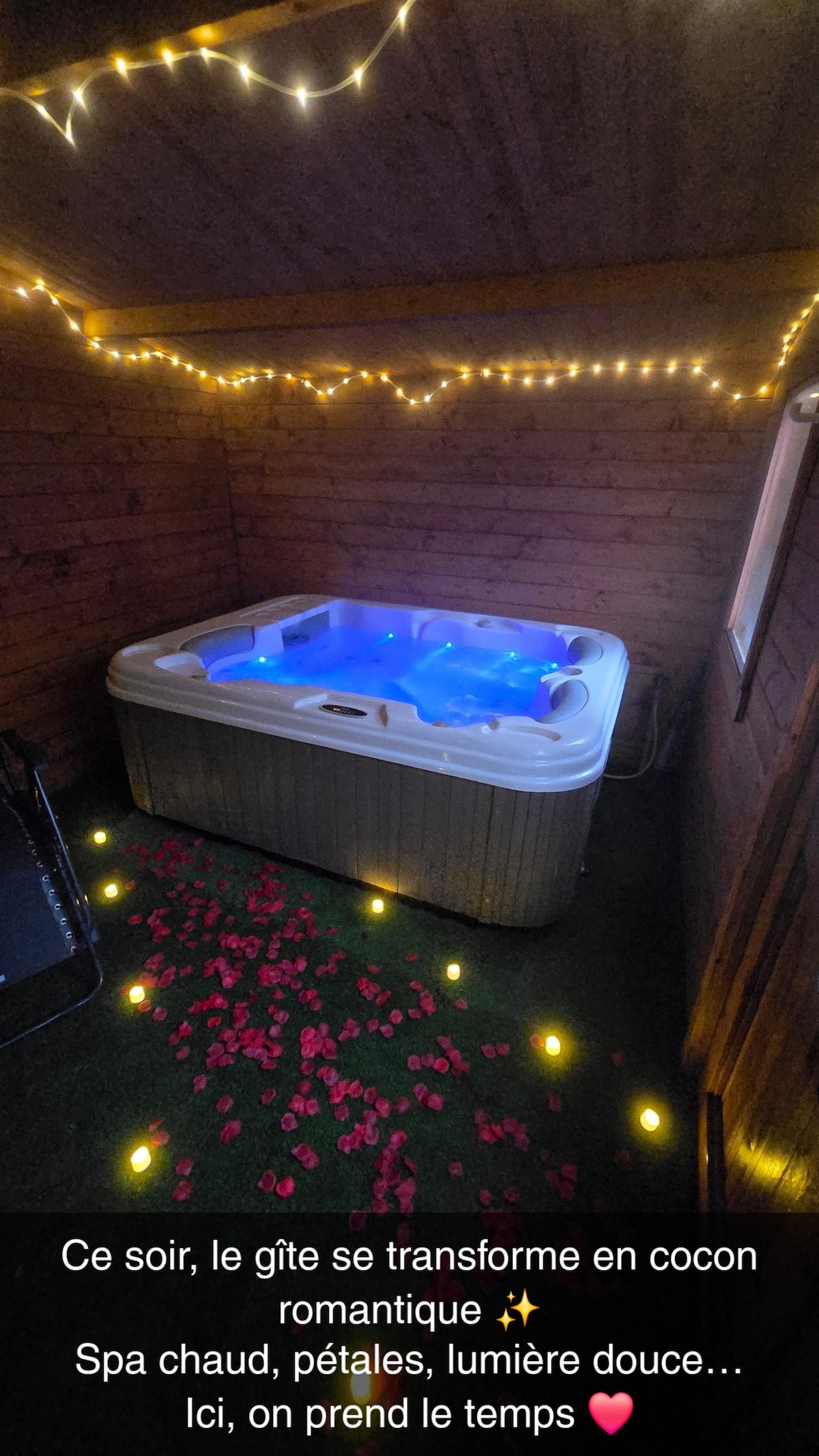 Venez vous détendre dans cette suite privé avec baignoire balneo (72 jets massants) La suite dispose d’une tv à écran plat orientable pour la regarder de la balneo , un mini frigo , une cafetière à capsules , un micro ondes , de la vaisselle .. Le linge de lit , serviettes et peignoirs sont compris le petit déjeuner est offert ( viennoiseries dépose au matin à la porte ) pour la première nuitée De nombreuses led permettent de créer une ambiance apaisante ( la baignoire aussi à des led)