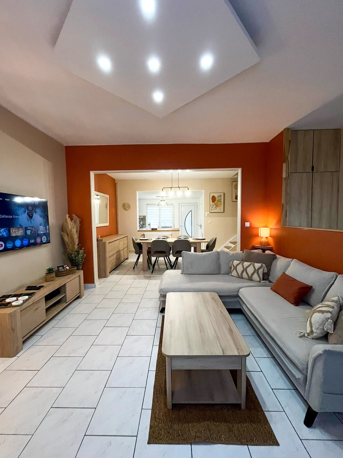 jolie maison 79m2 avec 3 chambres et petite cour . La maison a la Wifi et Netflix. 1 chambre lit 160x200cm et TV 1 chambre lit 140x190cm et TV 1 chambre lit 90x190cm et TV 1 coin nuit lit bébé 60x120cm avec lavabo. 1 salon avec 2 canapés 1 fauteuil TV écran plat avec console Wii. 1 cuisine avec plaque induction four lave vaisselle micro ondes cafetière bouilloire etc 1 salle de bain douche , machine à laver 1 WC 1 véranda avec table et 6 chaises , bureau. cour avec dépendance barbecue salon
