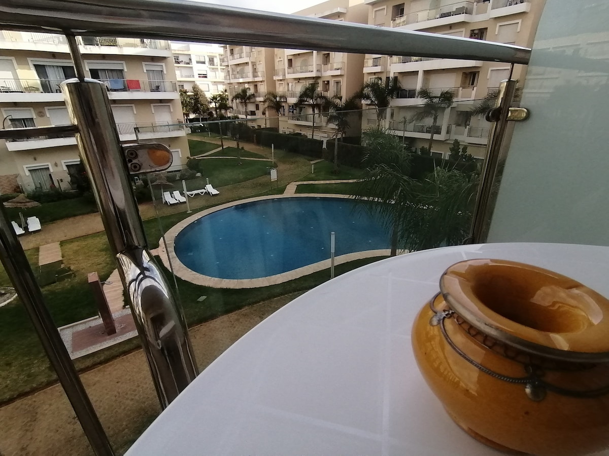 Welcome to our lovely apartment! Nestled just a short 20-minute walk away from the beautiful beach, it's a mere 5-minute drive if you prefer to take the car. For those keen on exploring, the train station is a convenient 5-minute stroll, making it easy to reach your desired destinations. You'll also appreciate the fact that Rabat is just a quick 20-minute drive away. A lot of people come here and say that they really like it. (La piscine est ouverte tous les jours sauf le lundi)