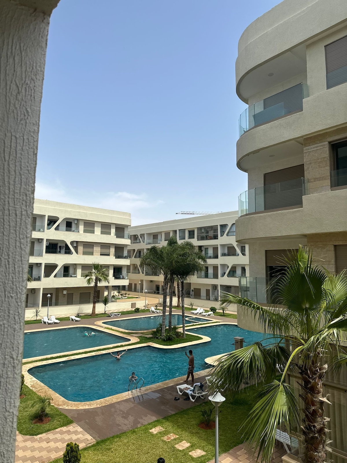 Important : pour chaque réservation je vous offre le petit déjeuner au @poundsfitkitchen le meilleur restaurant de la ville. Très bel appartement neuf dans une belle résidence calme l’appartement est seul à l’étage avec vue sur piscine . Idéal pour voyageurs et familles désirant profiter des belles plages de mohamadia. Ils y trouveront leur bonheur avec l’accès au piscines et aux différents airs de jeux pour enfants ainsi qu’aux terrains de tennis et football.l’accès à la plageà 5 min à pied