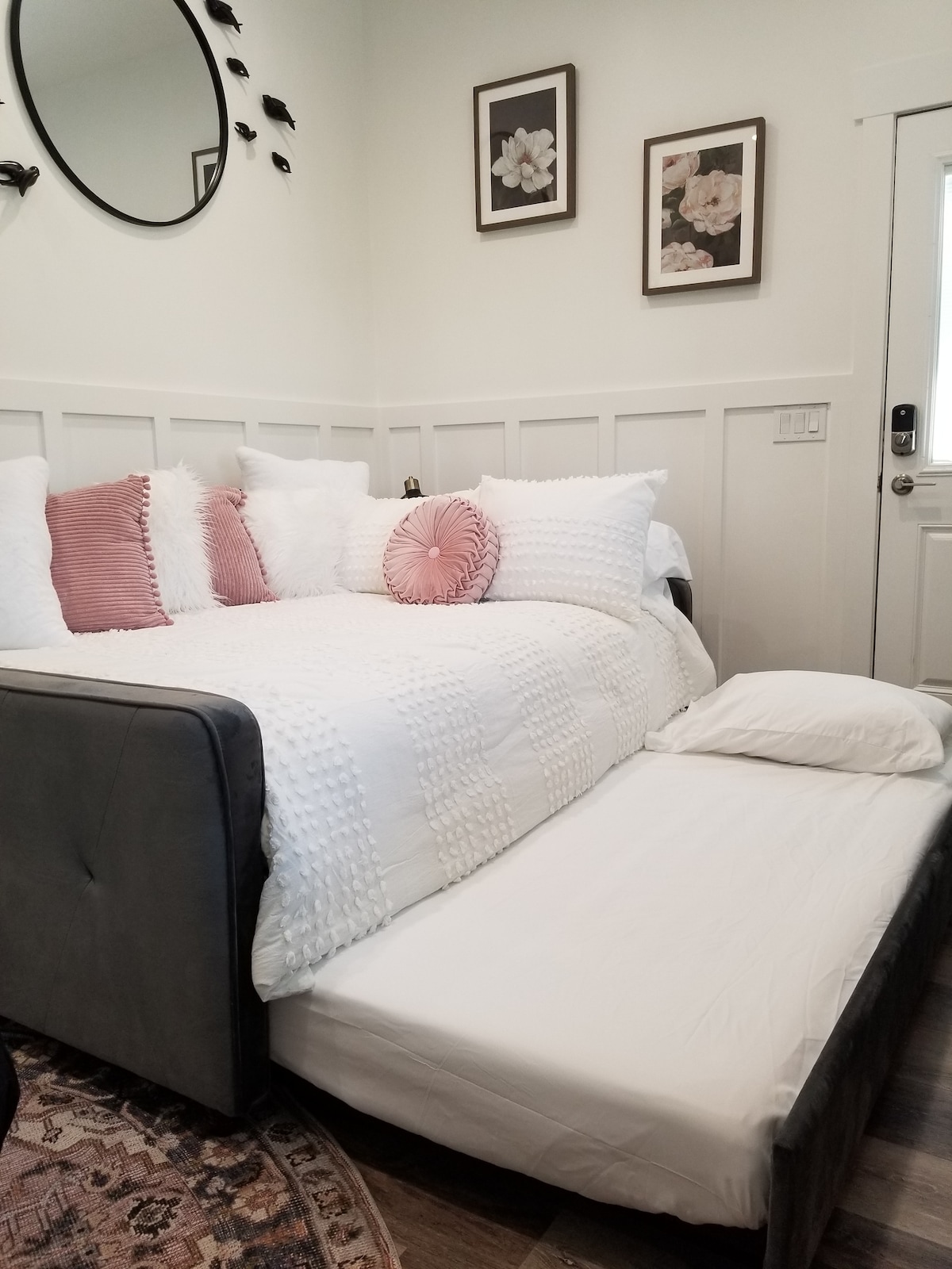 Enjoy a stylish experience at this centrally-located studio apartment. Equipped with fridge, microwave, and Keurig (coffee & tea pod, cream, sugar and splenda of course). Washer and dryer with tide pods. Towels, shampoo, conditioner, body wash & hair dryer included in unit. TV, high speed internet and Netflix. Full daybed with pull out twin trundle. Within mins of HAFB, hospitals, dining, and shopping. Private patio with table & umbrella. On-site parking. Easy keypad entry for self check-in.