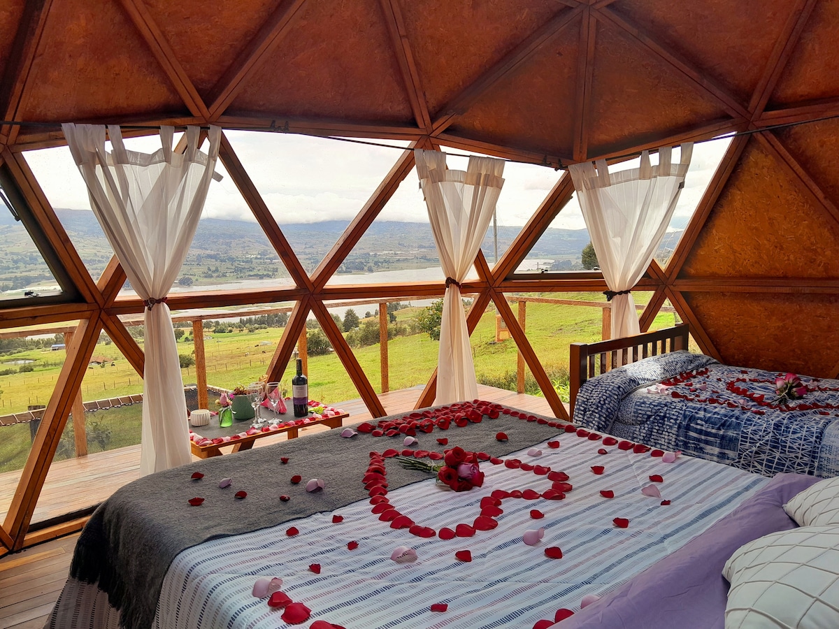 Terrojo is a serene retreat in Sáchica, Boyacá, just 20 minutes from Villa de Leyva. Surrounded by mountains and open landscapes, it offers privacy and calm. We feature 8 nature-immersed glampings, 2 Boutique Villas with heated infinity pool, and 2 Boutique Villas with jacuzzi, BBQ and fireplace. All enjoy spectacular valley views—perfect to disconnect from noise and reconnect with what truly matters.