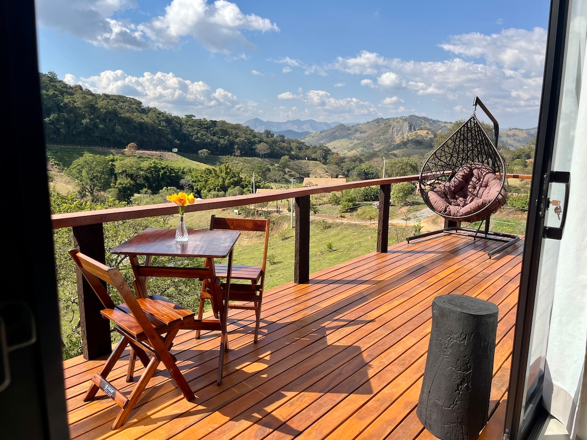 Hidromassagem, praça de fogo, rede suspensa e uma vista de tirar o fôlego! O Chalé Áurea está situado em uma charmosa cidadezinha, foi projetado para relaxar e renovar as energias. Ideal para casais, é o refúgio perfeito para momentos especiais e para surpreender quem você ama! Estamos a apenas 3 km de mercado, farmácia e padaria. Self check-in com cofre de chave garante praticidade e privacidade. Ficaremos muito felizes em receber você!