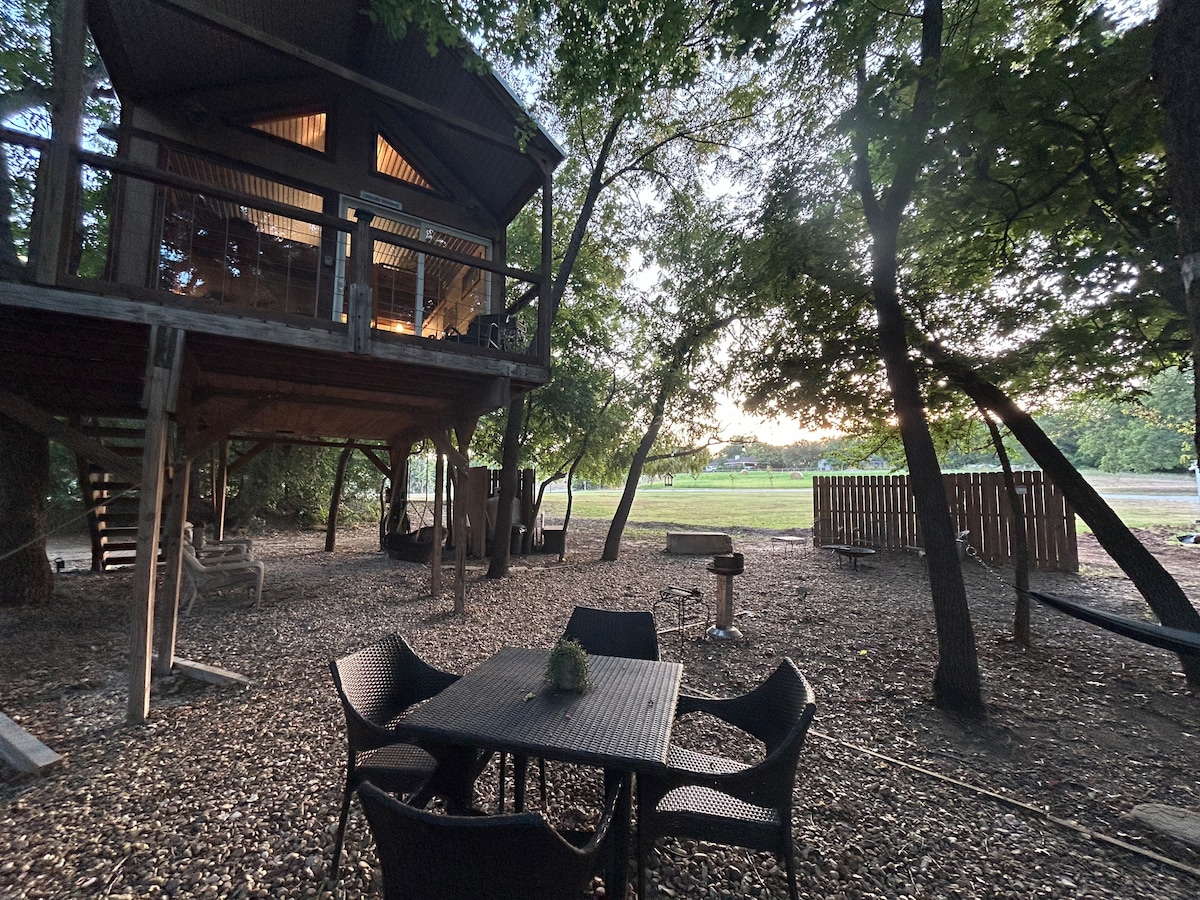 Nestled in a ravine and surrounded by towering oak trees, 30 min. fr. DFW, The Casa Estiva is truly a place of natural refuge providing a good dose of peace for the soul. Imagine awakening to song birds all around you. Then, when evening arrives, enjoy the quiet sounds of night. Built for the nature enthusiast with modern charm, The Casa Estiva is truly a magical stay . In 2025, we transitioned the hammock area into a wonderful spot to earth. A hammock is still available at the pergola.