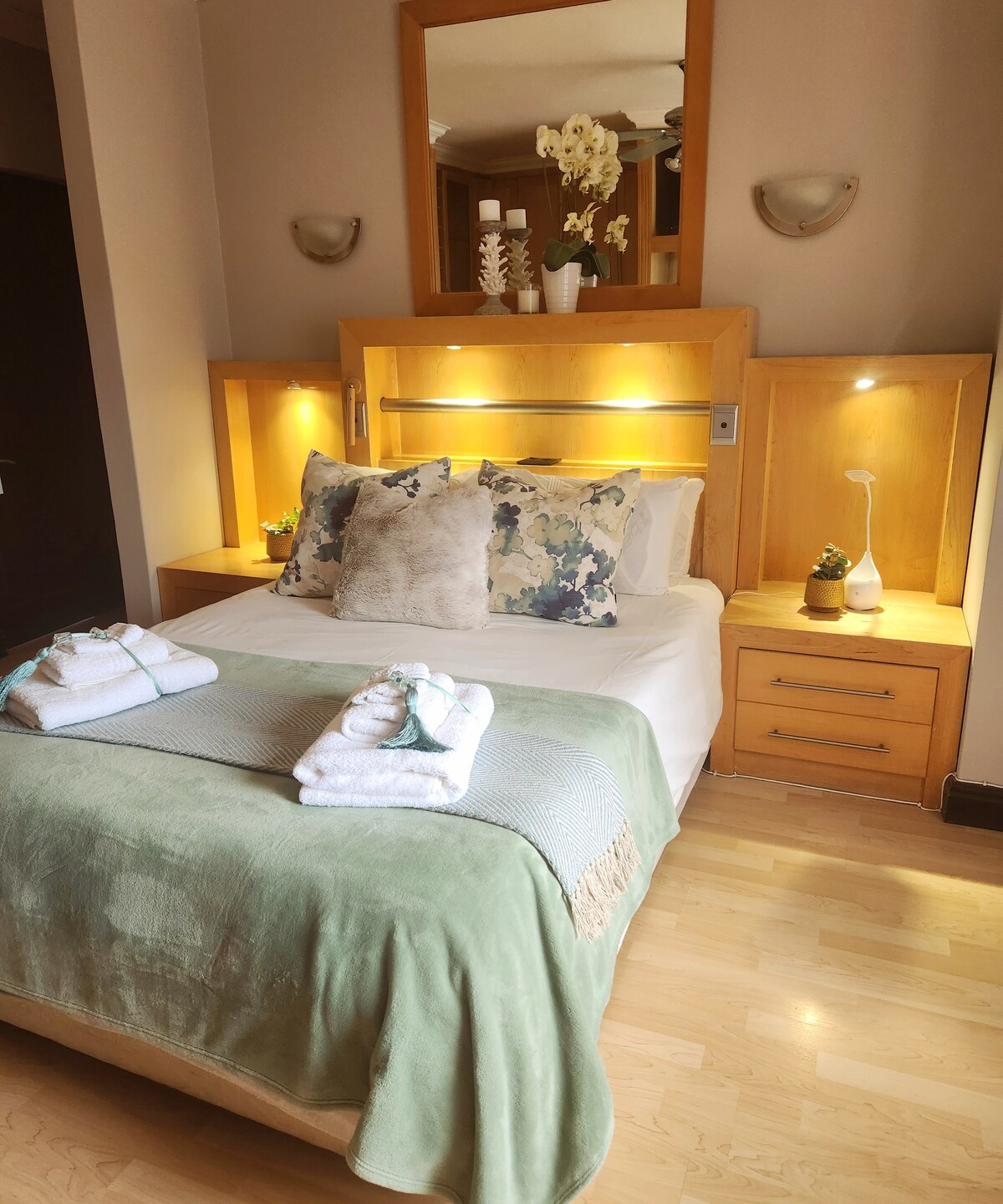 Choose from King/twin beds, en-suite bathroom with shower, fully equipped kitchen, patio. 400TC Egyptian linen, 100% cotton towels. Flat screen TV with DVD player and now with DSTV. FREE Wi-Fi. BBQ facilities available on patio. (no children/babies allowed in double rooms)