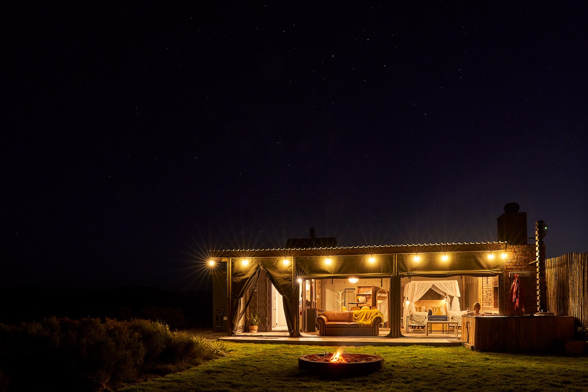 One-bedroom, very private romantic cottage with king-size bed and open fire place. Victorian bath for two, exotic out-side shower. Fully-equipped kitchen with fridge, braai and gas stove. An elegant sitting-room with open fireplace. French doors open onto a shaded stoep with a braai place. A deep plunge-pool leads off the stoep and some of some of the most amazing views we can offer. The cottage is not serviced and we will do our best not to bother you at all.