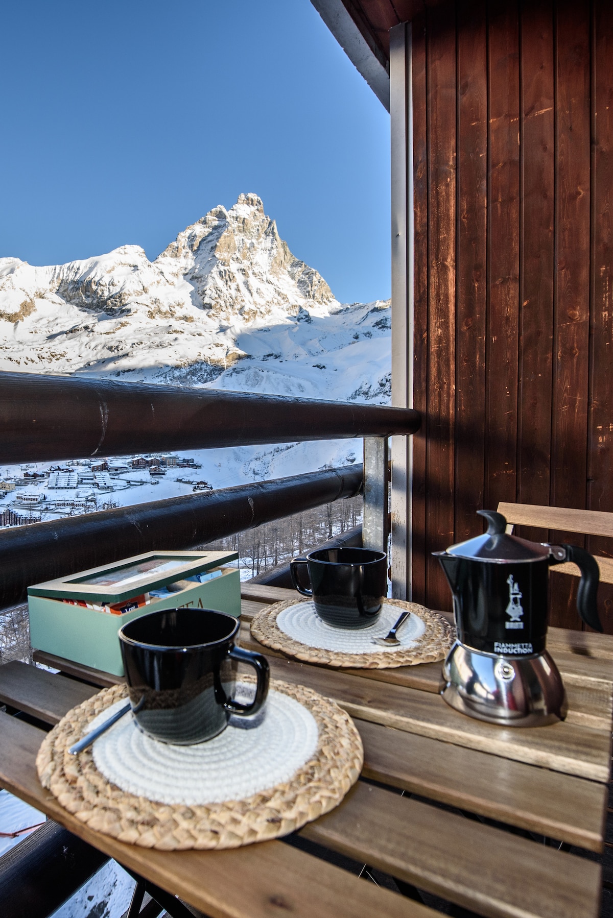 Beautiful 3room apartment in the Cieloalto area of Cervinia with direct access to the ski slopes and view of Matterhorn 5th Floor with elevator, Concierge, WiFi, bed linen and towel included Comprised of a living room, 2bedrooms, kitchen and bathroom