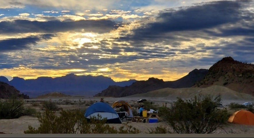 A great location, 8 miles to BBNP; 12 to BBRSP, with a Chisos Mt. view, a fully equipped campsite with a roomy canvas tent (an outdoor rug is inside), wifi, a picnic table, cook table, Coleman stove, tabletop grill, 2 Adirondack chairs, fire pit, rechargeable lantern, a sink for easy clean-ups, basic dishes and utensils for two, & shade from a large patio umbrella. Campers access a private outdoor shower and camp toilet nearby. Bring your own bed/sleep system/bedding; whatever you prefer.