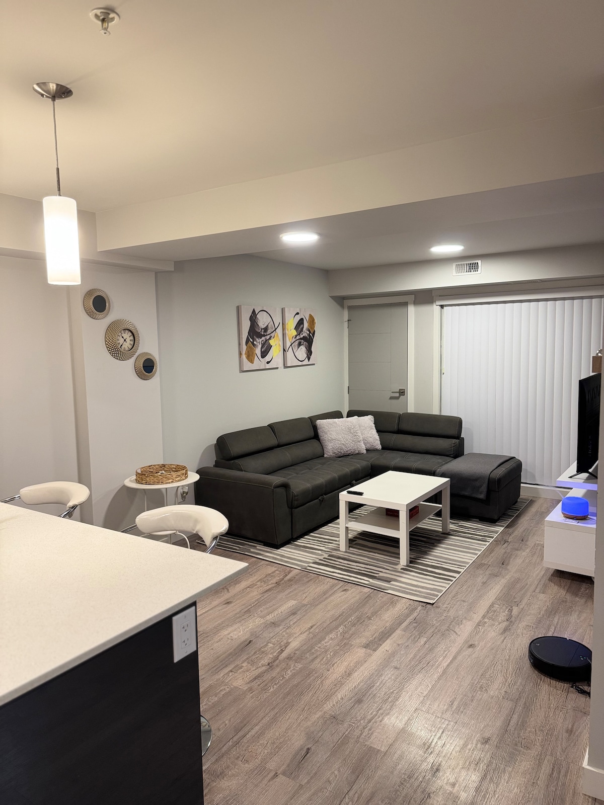 Cozy and private 1-bedroom basement suite with high-speed internet (200M), in-suite laundry and fully equipped kitchenette. Board games + Smart TV with Netflix, Crave, Disney+ and Prime. Quiet, smoke-free, pet-free, and professionally cleaned and sanitized after every guest. Whether you're in town for business or weekend getaway or a longer stay, this suite is comfortable and self-sufficient. Guests will be able to cook simple meals with induction cooker, blender and Ninja Air Fryer.