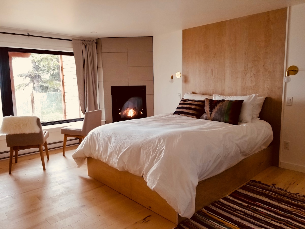 - private bedroom, bathroom, living room, entrance and deck - the living room has a small fridge, toaster, microwave, espresso machine, kettle, dishes, and a dining area - breakfast supplies provided (coffee, tea, cereals) - Endy queen bed + sofa bed & collapsible crib. Sheets are linen or organic coton from Canadian companies. - on-site, off-street parking - wifi - electric fireplace - smoking on the private outside deck - 10-minute walk to downtown, Lakeside Park, and groceries.