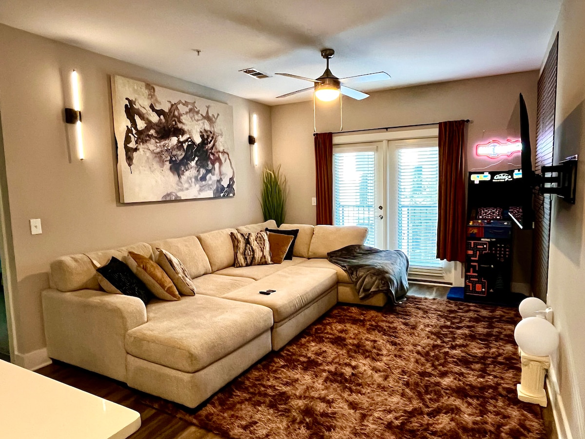 This stylish home is perfect for a single traveler or a group stay. Its modern design, stylish furniture and ultra-comfortable King bed, make this the ideal place to stay when visiting Atlanta. The residence has a private entrance and is separate from the main house above. The home incls 1 flat screen tv with complimentary Wi-Fi, cable, NetFlix and other streaming services. 15 mins from Midtown & 12 mins from the Atlanta Airport makes this the perfect location when visiting ATL!