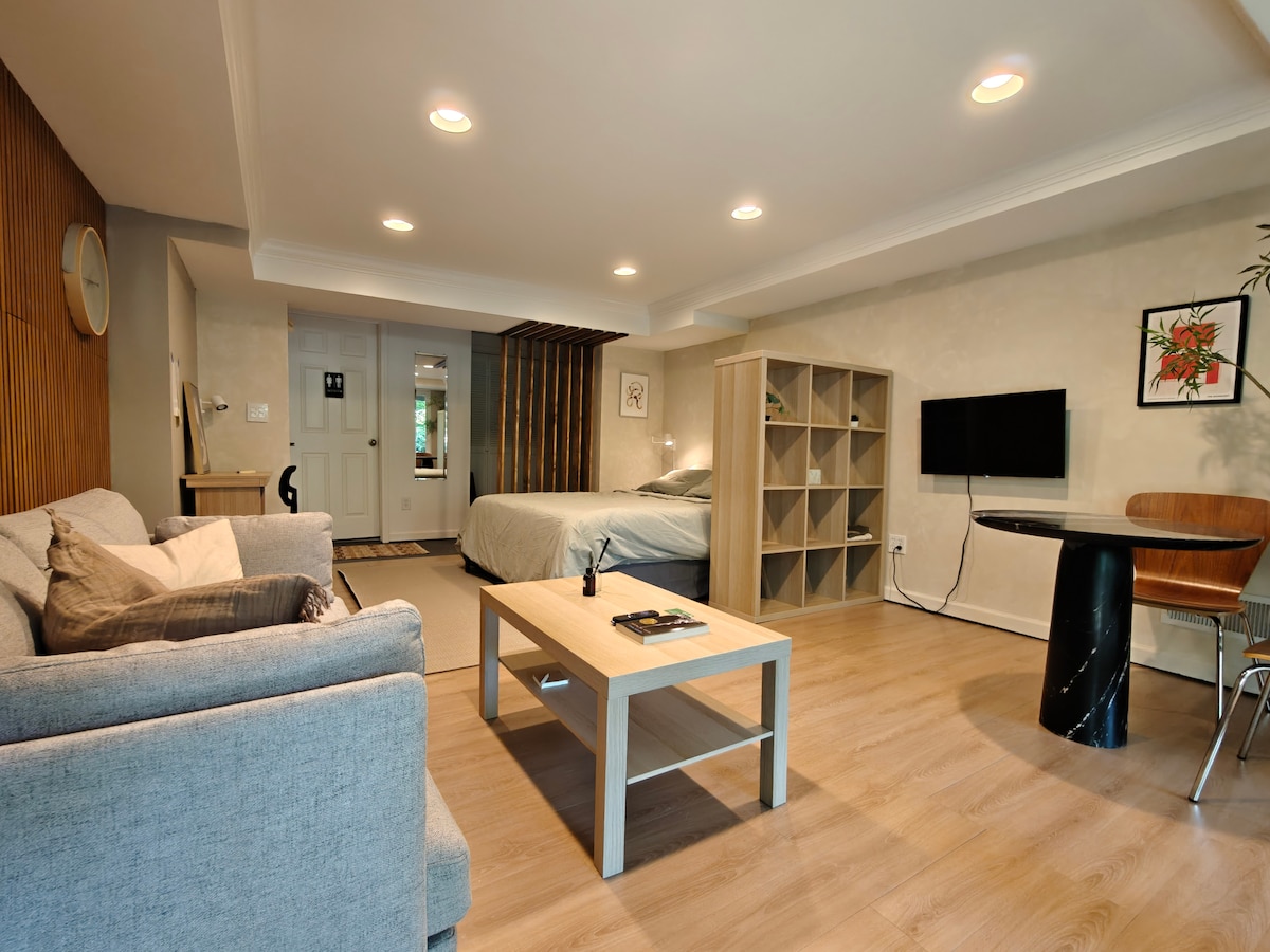 NO CLEANING FEE - Although we don't charge a cleaning fee, our cleaners work very hard to provide a clean place for our guests. THIS IS NOT AN ENTIRE HOUSE. This is a terrace-level guest SUITE in a home in a nice neighborhood with many high end homes. Very safe and quiet location with no thru traffic. The guest suite is private to you with your own private entrance. Access does not include the rest of the house. FREE PARKING on your own reserved spot! NO PARTY policy enforced! (read below)