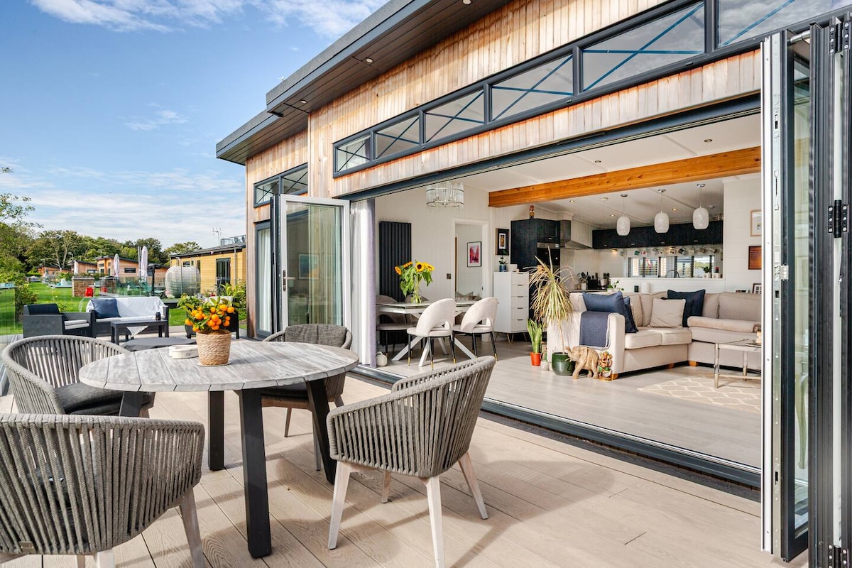 Beautiful modern light-filled lodge by Windsor Racecourse Marina w/ free parking in gated community. Two bedrooms & bathrooms plus a large open plan kitchen & living area provide a bright luxurious space surrounded by greenery. Close to Windsor Castle, the Long Walk, Ascot & Henley it's a peaceful retreat from busy life. This is my home, occasionally available when I'm away, much loved and genuinely cared for with plenty of character. It feels like someone lives there, because someone does.