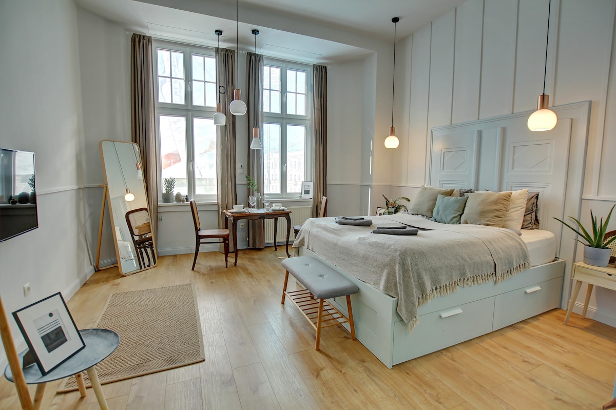 Quiet, centrally located, so you can easily reach the main sights of the city, by foot or by public transport, which is in front of the apartment. The apartment is furnished with complete kitchen equipment, washing machine, towels, bed linen, shower gel, shampoo. Fast internet, smart TV. Parking in the garage 200 meters away is free of charge for 1 car. Breakfast is included in the price and is available in California Coffee near the apartment. The apartment next to it is also for rent.