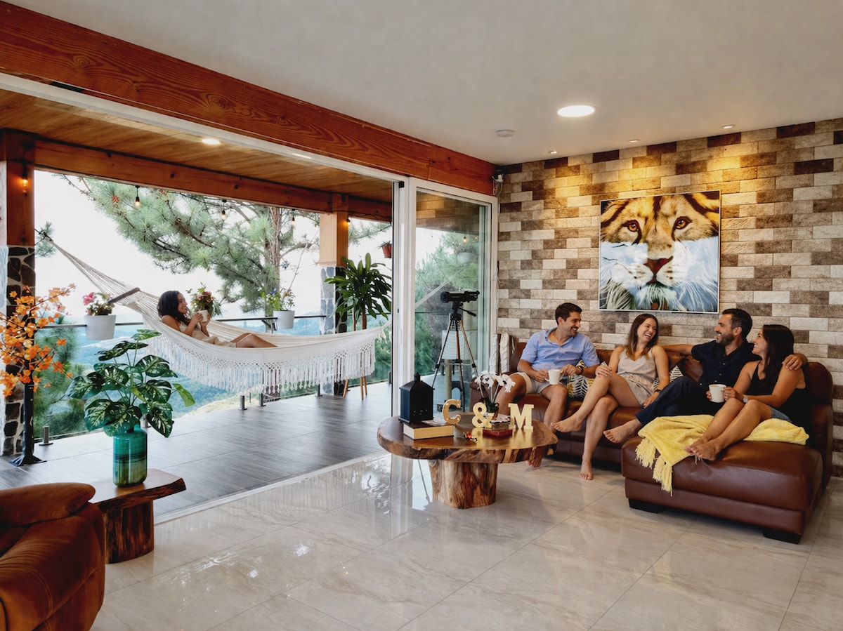 Relájate en pareja o en familia en donde la tranquilidad se respira en medio de arboles. Durante el invierno escucharas el sonido de nuestro riachuelo y el trino de las aves. Disfruta a cada momento de nuestra vista privilegiada hacia el majestuoso cerro Pichacho en la comodidad de nuestra amplia terraza y balcones. Tenemos varios balnearios a pocos metros en auto. El mas famoso y hermoso es el de las cascadas las Doncellas. Podrás visitar pueblos cercanos como Manglarito y Filipinas.