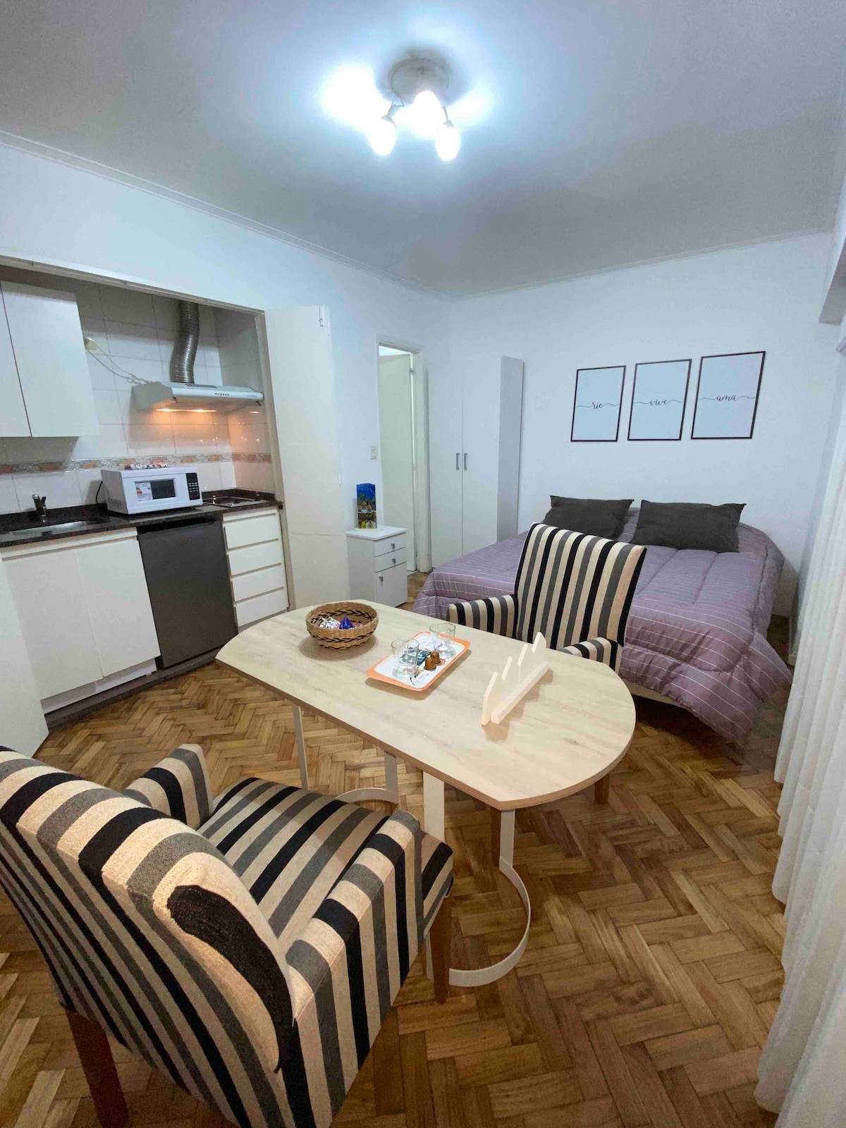 It is a luminous interior studio apartment of 28 m2, located in a new building and in one of the most central areas of the city, ideal for getting to know Buenos Aires on foot. It has a 43" smart TV, high-speed internet , a double bed ( of high quality) or 2 separate ones (0.80cm wide, 1.90m long) at the guest's choice, hot/cold air conditioning, safe, spacious, and modern bathroom. The building has solarium, gym and laundry.