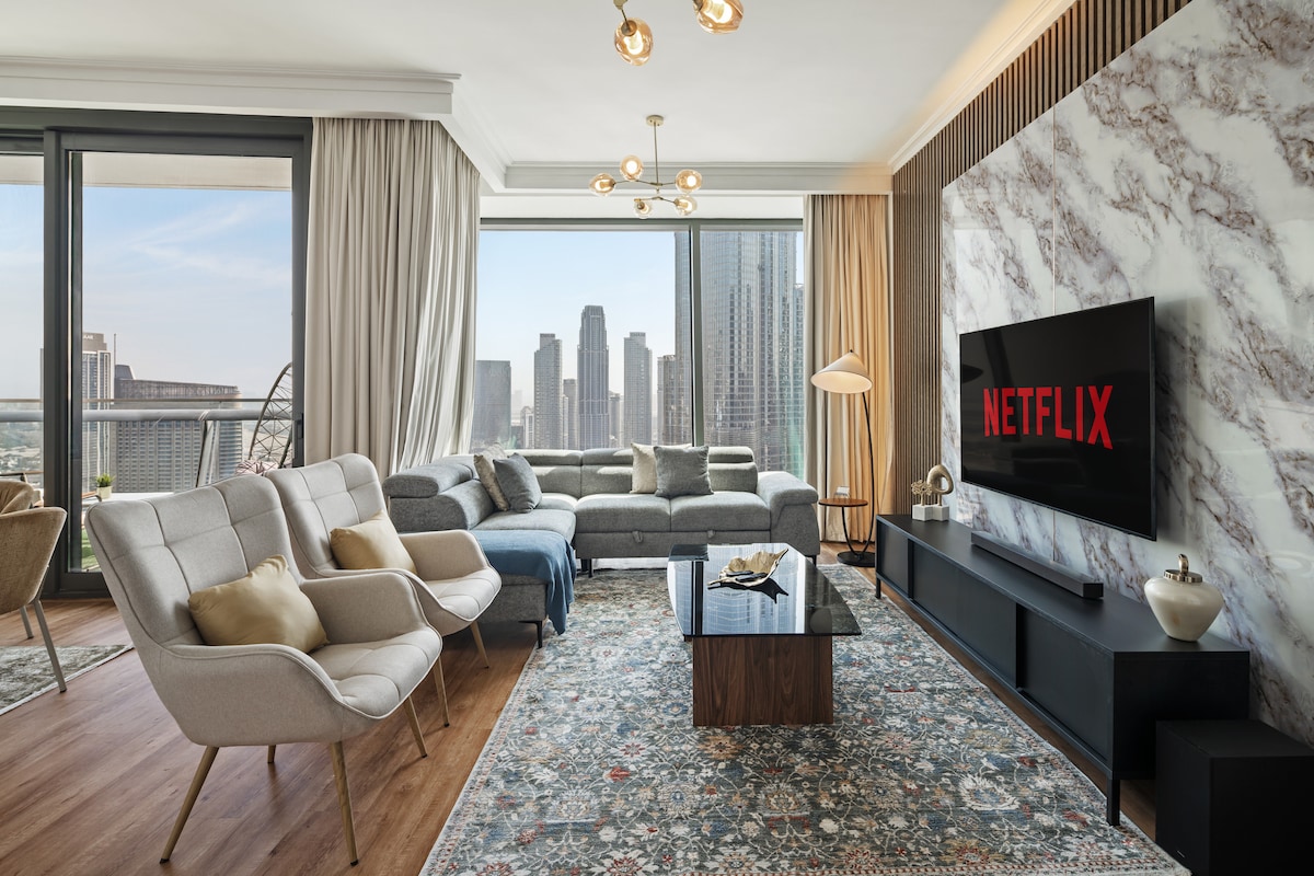 Welcome to our one bedroom Seraya residence at Downtown Views I. Thoughtfully furnished with bespoke pieces and soft, elegant details, this apartment offers a sense of effortless sophistication. Enjoy direct indoor access to Dubai Mall — just a short, air-conditioned stroll away — along with access to exceptional amenities, including a beautiful pool, modern gym, and inviting lounge areas. Every element has been considered to make your stay feel easy, refined, and truly relaxing.