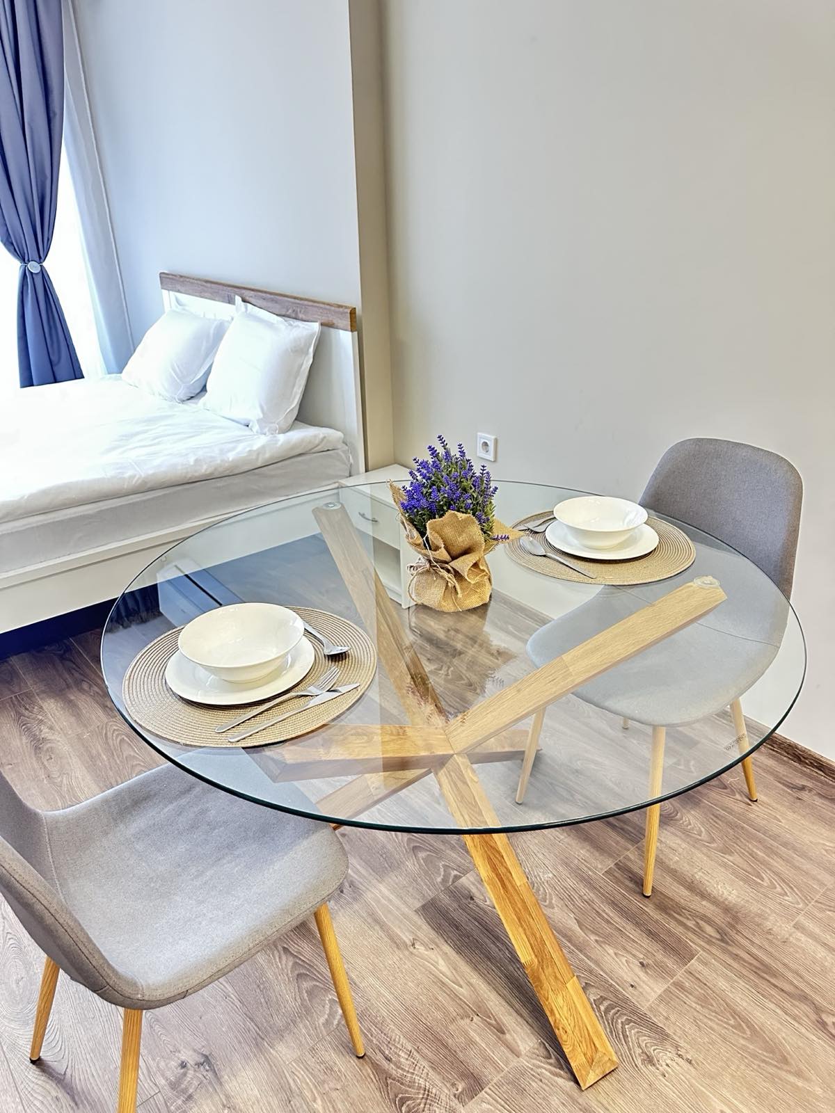Apartment provides double bed, foldable sofa and fordable single bed ,fully equipped kitchen with cookware, tableware, dining area, bathroom with shower cabin, airconditions private parking place. Good for couples, solo travelers, business travelers, and families with kids.