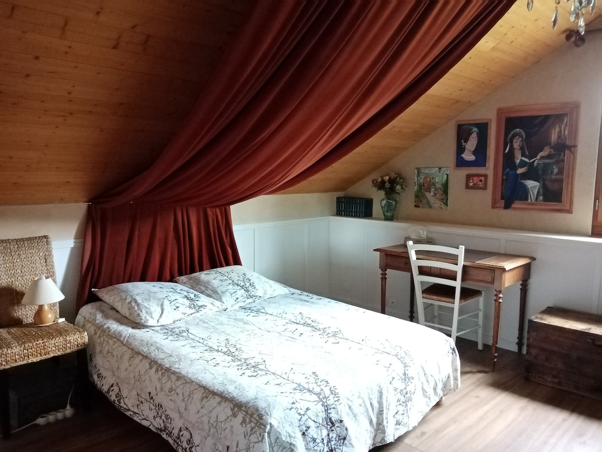 Notre maison est située en pleine nature, au cœur de la campagne, sans vis-à-vis, sans voisins, avec une vue panoramique de plus d’une centaine de kilomètres, entourée par des hectares de pâturage. L’accès se fait par un petit chemin privé et empierré. Vous disposerez d'une piscine privée de 3 m par 13 m, sécurisée par une clôture et un volet électrique, d’un terrain de pétanque, table de ping-pong, trampoline, baby-foot, brasero et barbecue. Notre ferme bio est située un petit peu plus loin.