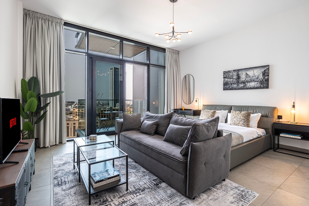 Experience elegance and comfort in our chic studio apartment with a large terrace in Downtown Dubai. Overlooking the Dubai Water Canal and within walking distance of Dubai Mall and Burj Khalifa, it’s the perfect base for your stay. Inside, enjoy a king-size bed, fully equipped kitchen, free WiFi, smart TV and complimentary parking. Whether traveling for business or leisure, our apartment blends style, comfort and location for an unforgettable Dubai experience.