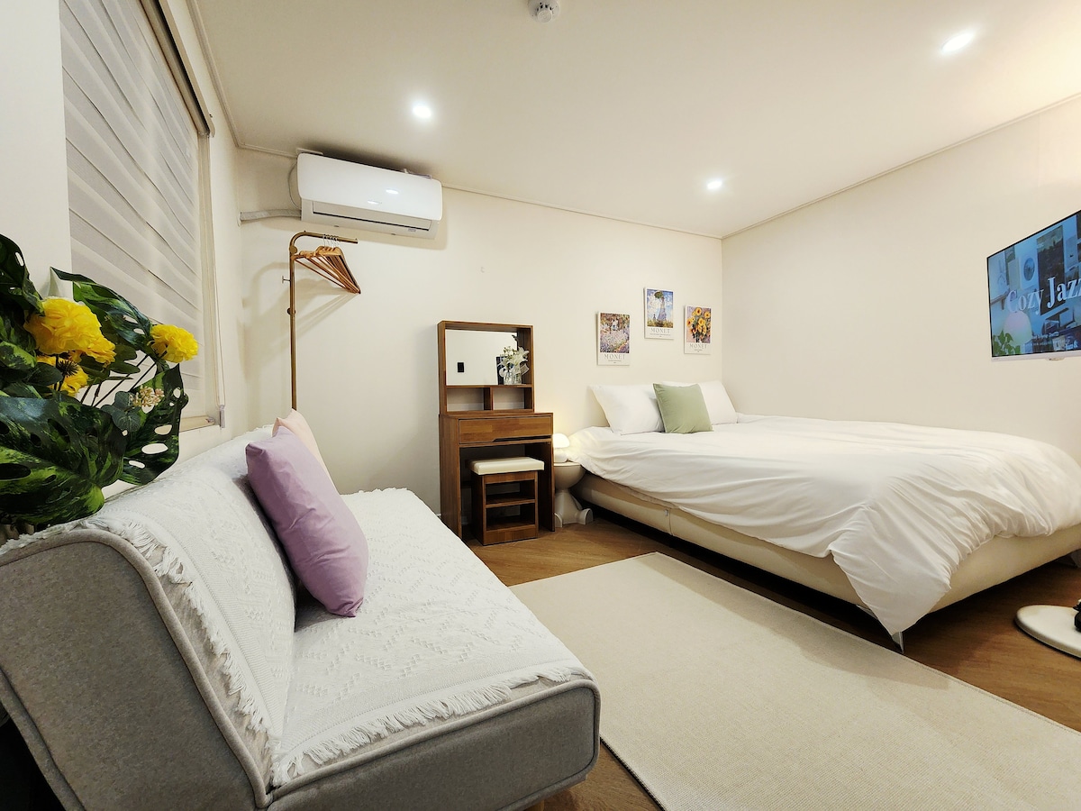 1点退房/距离书面 5 分钟/距离全浦 1 分钟/2 间卫生间/5 张床/免费行李寄存/27 平方米/安静的房源