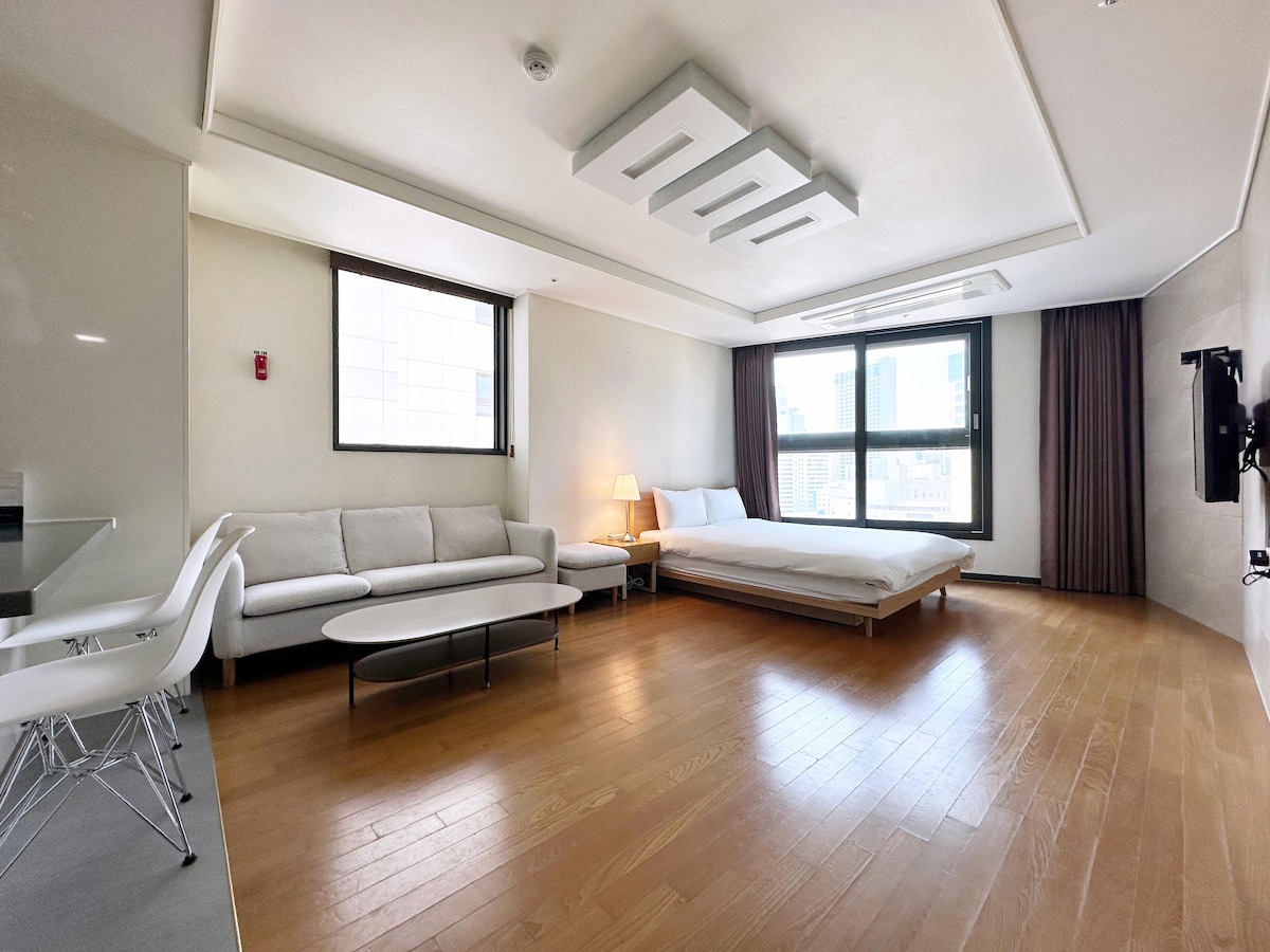 hello, ○Recognition scale Premium family hotel Size (165m²) Up to 16 people 6 beds, 3 bedrooms, 2 bathrooms, 2 living rooms ○Advantages of lodging Luggage storage service Self-wash using 100% safe detergent Allergy care used on all bedding 1 minute walk to MRT One-time housekeeping service for stays of 3 nights or more ○Lodging location It takes 20 minutes by car to the property by KTX and 30 minutes to the airport. All major tourist attractions can be reached within 30 minutes by MRT.