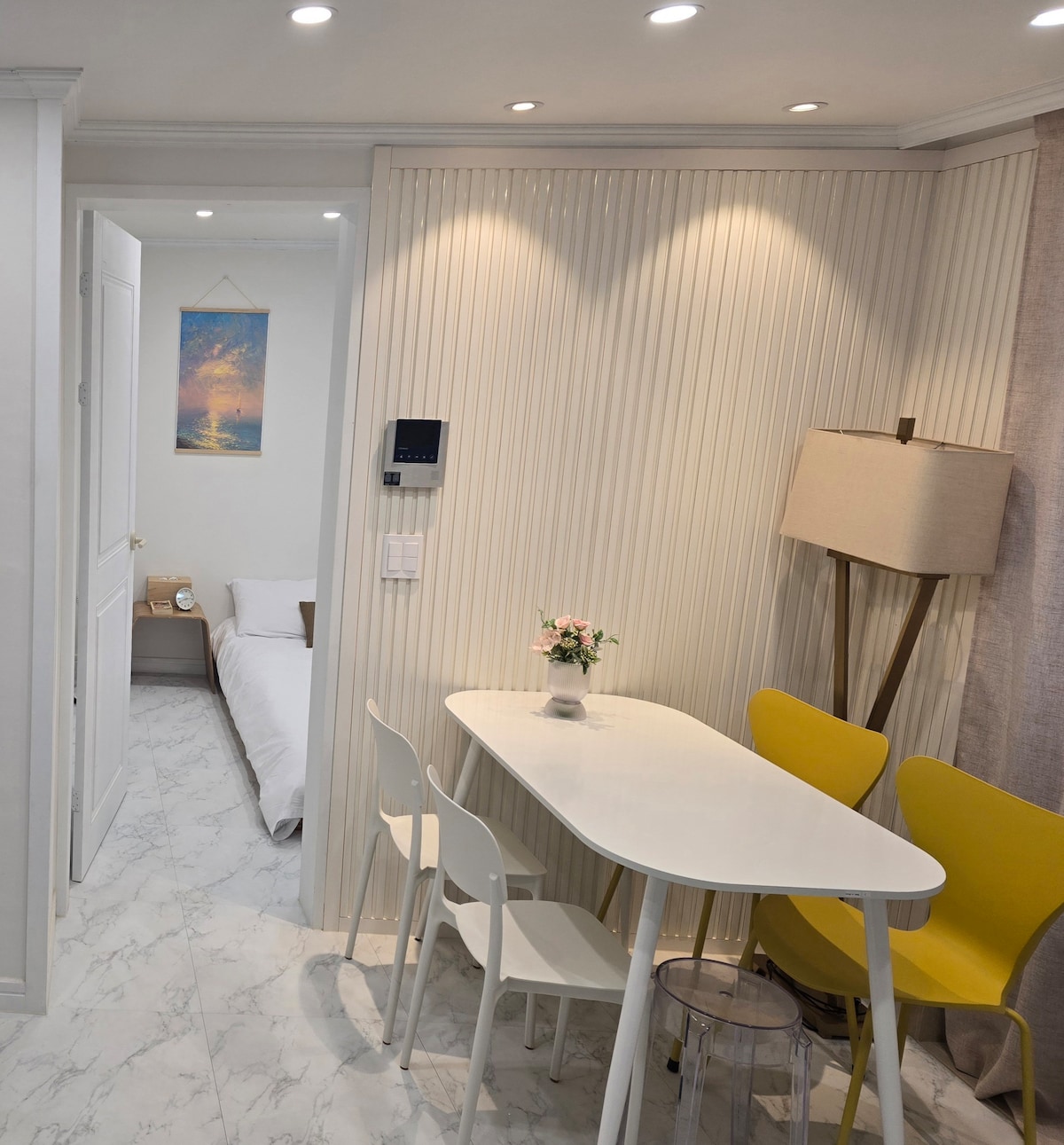🚃전포역 1분거리에 위치한 숙소 ☕️전포카페거리 근처 ! 유명카페 걸어서 가요 🍱맛집 , 베이커리 , 디저트전문점 다수! 핫플구역 ✨매일 침구 교체, 깔끔 청소! ENTJ 여성호스트 🌿오늘의집 인스타 감성 플랜테리어 🎬넷플릭스O 유튜브O ,넓은 55인치 티비! 🌃시티뷰, 침대에서 보이는 넓은 하늘 뷰 🎵음악 좋아하세요? 턴테이블 LP 비치 ✨퀸사이즈 침대, 고급매트리스 편안하게 주무세요 - 1min away from Jeonpo station - Jeonpo cafe Street, one of the famous tourist attractions in Busan, is close by. - Changing bedding everyday, cleaning cleanly. Woman host! - Free Netflix/Youtube, 55-inch Large TV. - Nice city view, wide sky view from bed.