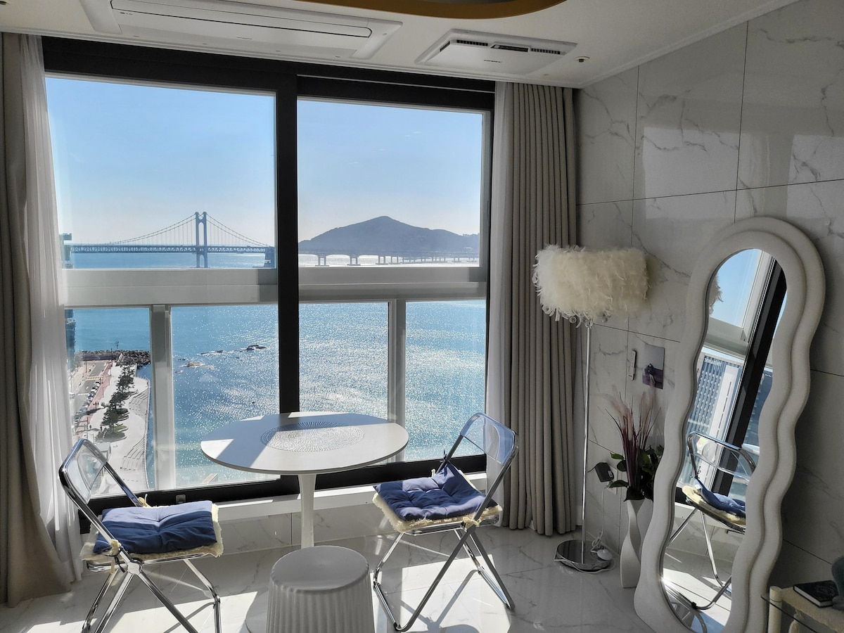 💕 주차비를 전액지원해주는 인심좋은 호스트가 운영하는 광안리 에서 가장 최근에 건축된 최신건물! ❤️ 광안리해수욕장. 해변산책로, 인근 회센터. 밀락더마켓 등으로 둘러싸여 광안리 관광 핫플레이스의 가성비 👍 로케이션!!! 💕 내집처럼 편안한 숙소에서 바라보는 광안리 해변야경 뷰, 3천원에 이용할 수 있는 뷰깡패 사우나.!!!!군더더기없는 깔끔한 힐링공간에서 잊지못할 추억을 만들어 보세요. *영어로 프리토킹이 가능한 관리인이 상시대기하고 있으니 언제든지 문의주시면 달려갑니다!
