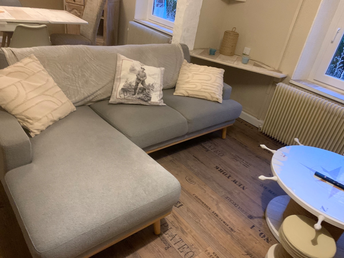 Au bord de la Moselle et à proximité de la voie verte. Au pied du ballon d'Alsace et de Servance. Maison chaleureuse pour 2 à 4 personnes. Environnement nature, au calme, face aux montagnes . Une terrasse privative pour les beaux jours...A 10 km du Ballon d'Alsace et du Rouge Gazon. Un chemin vous mène au bord de la Moselle, passé le pont vous accédez directement à la voie verte.