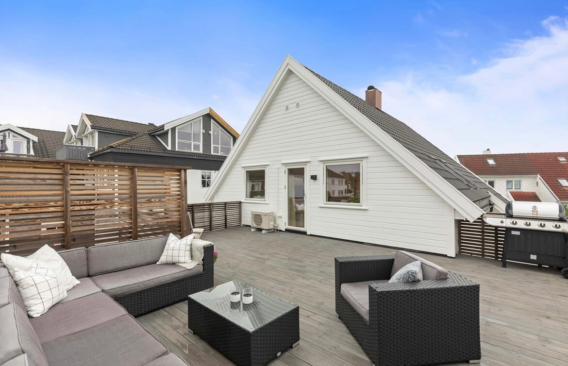 Enten har du et sted med sjøen, eller i sentrum. Her får du begge deler! Balkong på begge sider og lys inn fra 4 kanter! ☀️☀️ Bare 15 meter fra bryggekanten gjør at den er nærmest sjøen av alle leiligheter i kvadraturen. 🌊 Leiligheten ligger langs den bilfrie strandpromenaden. 🏝 Du nyte panoramautsikten av byfjorden, festningen og bystranda. Du ser ut på Grønningen fyr som møter horisonten ute i havet.🎣 Du ser også rett bort på det nye utendørsbassenget til Aquarama. 🏊♀️🏊♀️🏊🏊♂️