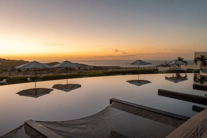 Ocean Views! Best location! Copala at Quivira 1800 acres of 5 star luxury! Minutes to Marina and beach. 2 bdrm. 2 bath. Heated infinity pool, kids pool. Best amenities in all of Cabo. The only golf course with panoramic ocean views. Whale watch from your terrace or shore fish on your 3 mile private beach. Clubhouse Pool, hot tub, bar, gym, spa. Hiking trails. 20% off all Pueblo Benito resorts. Car SUV avail for $50 a day, over $150 to rent elsewhere. Paradise found.