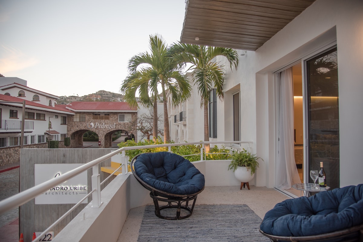 Descubre nuestro hermoso estudio de lujo de 1 cama king size y 1 baño equipado en uno de los vecindarios más seguros de cabo Tendrás unas vacaciones memorables en los Cabos. Nuestras amenidades de lujo y albercas te harán sentir como en un resort! A solo unos cuantos de la carretera principal de los Cabos que ofrece fácil movilidad. A unos cuantos pasos de Costco. Nuestra terraza equipada, escritorio para home office, cocineta y WiFi brindan la mejor de las comodidades.