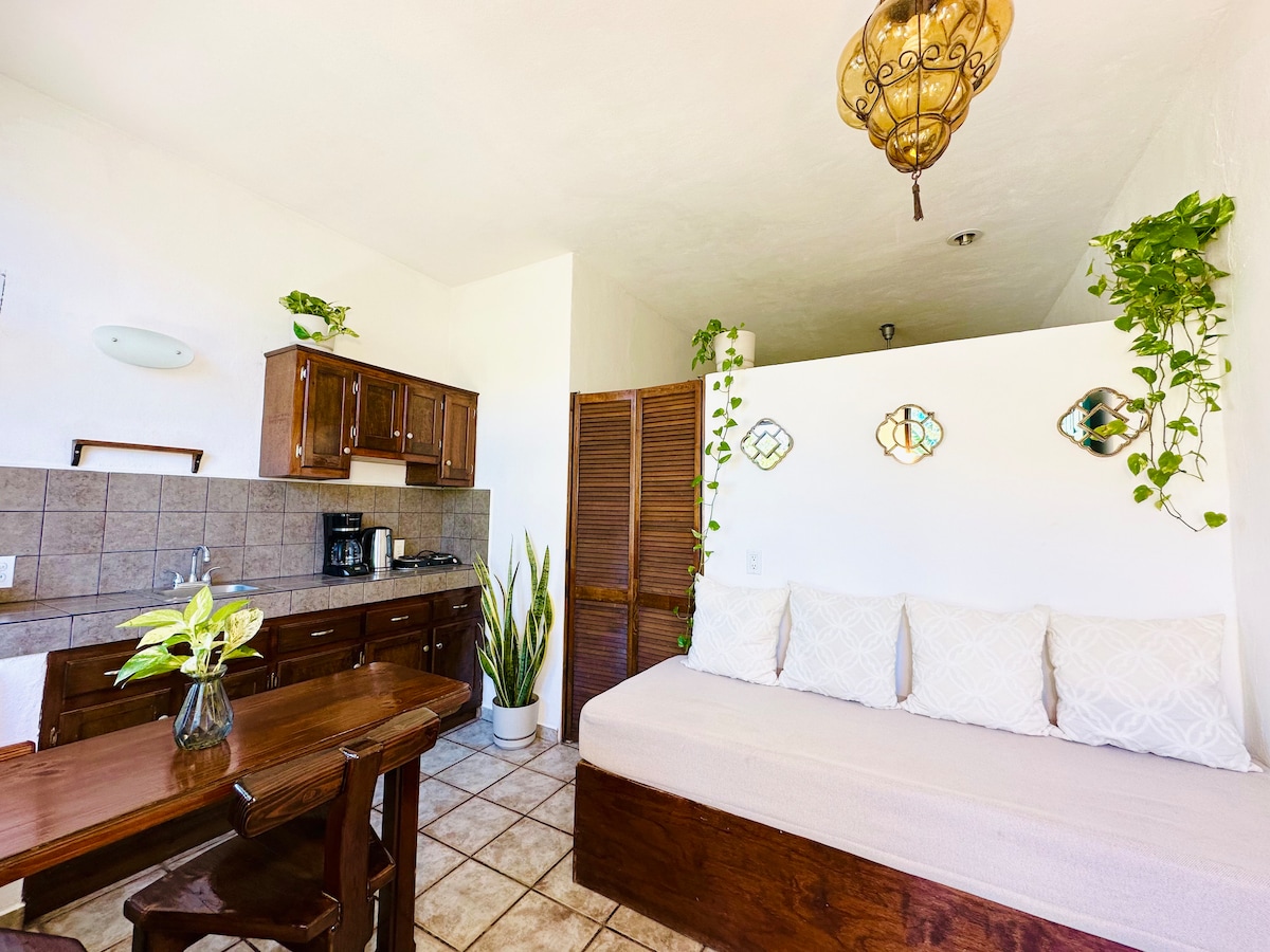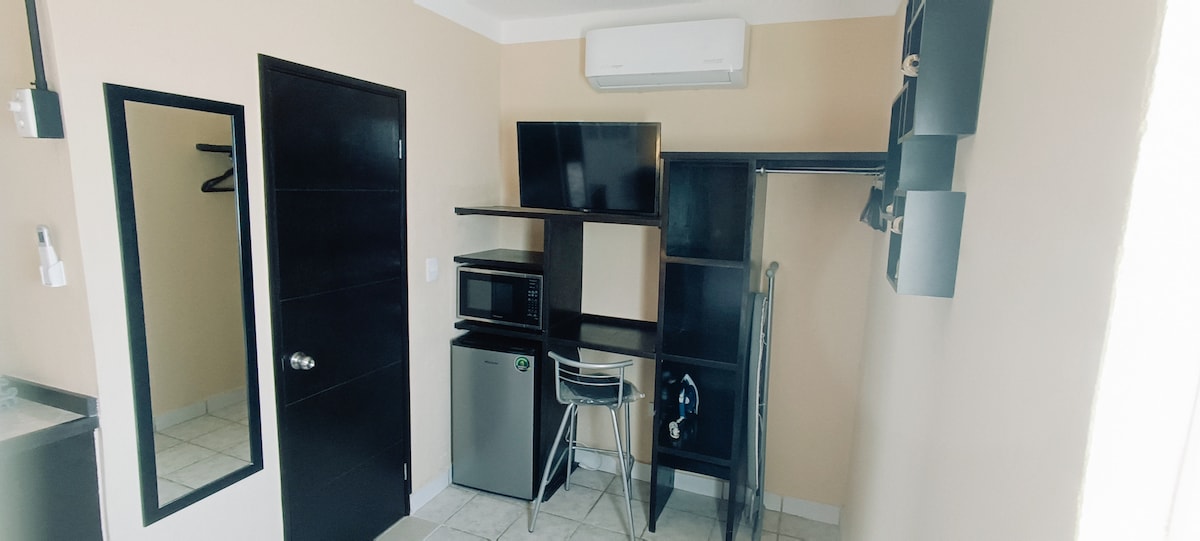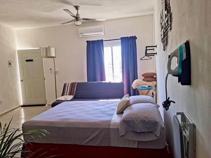 We are in downtown area, one block from The Marina, Cabo’s nightlife, Puerto Paraiso Mall, Luxury Avenue, Banks, Starbucks and aprox 10 minutes walking to the beach. Walmart and Chedraui by walking distance. Around our place you can find several restaurants, Pharmacy and grocery Stores. It’s a safe quiet place and the room has kitchenette and everything you need to enjoy your stay.