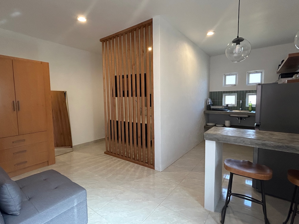 Estudio tipo loft en Cabo San Lucas, esta en un primer piso cuenta con escalera y entrada independiente sin elevador. A solo 20 min al centro en carro o autobús, además tiene tiendas de conveniencia cercas, la Plaza Caribe donde encontraras una serie de locales donde comer, ejercitarte y divertirte como también un Cine, cerca del domicilio por la avenida se encuentras Lavanderias, Taquerias, Cenadurias, etc.