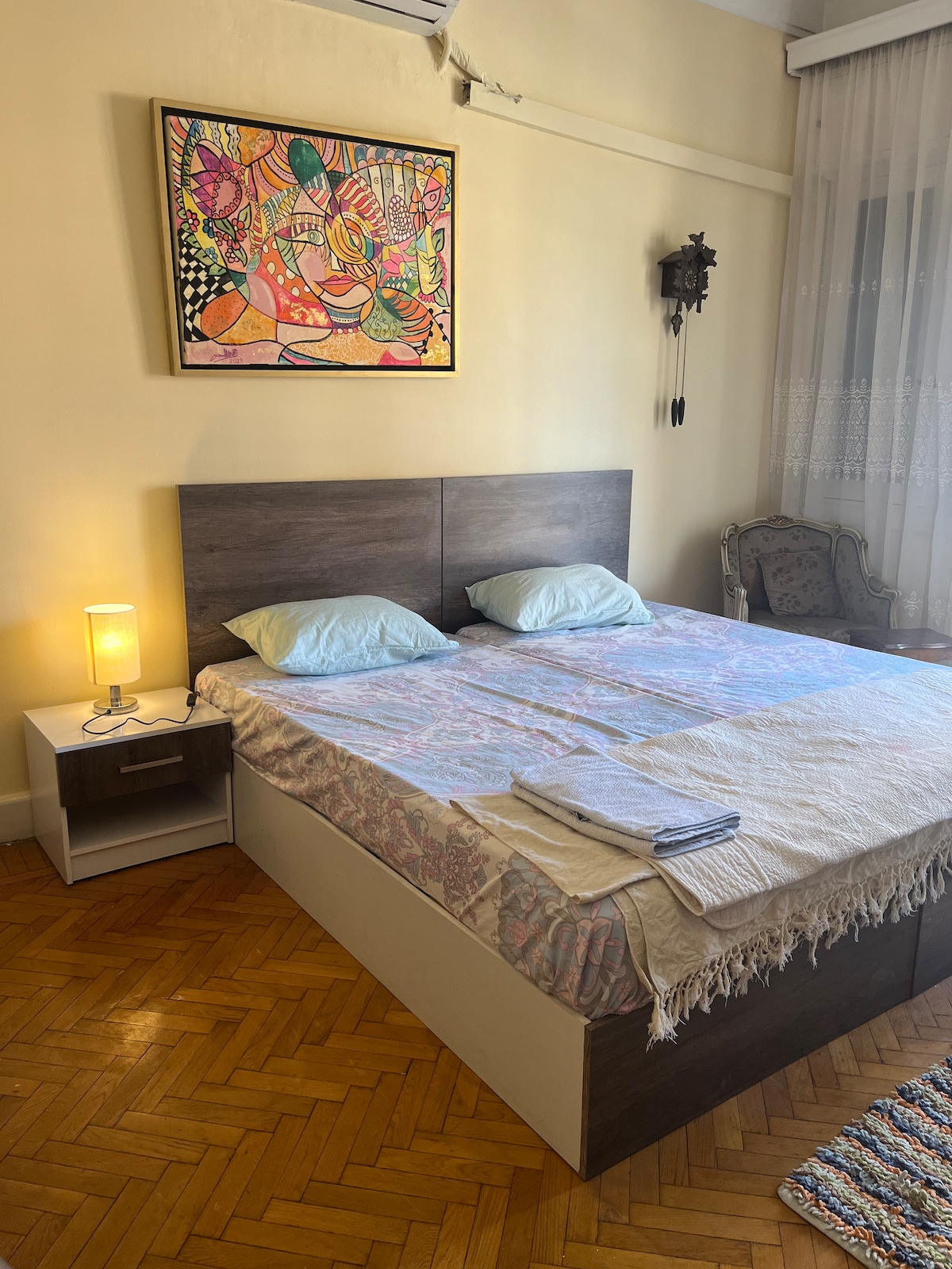 Experience comfort and elegance in our spacious room, featuring two cozy beds, a plush sofa, and two inviting chairs. Enjoy air conditioning, high-speed WiFi, a flat-screen TV, and a fan. Step out onto your private balcony to soak in the vibrant sights and sounds of downtown Cairo. Indulge in our vintage dining room and living space with precious furniture, and cook in our fully equipped kitchen. Your perfect home base for exploring Cairo awaits. Book now and make unforgettable memories!
