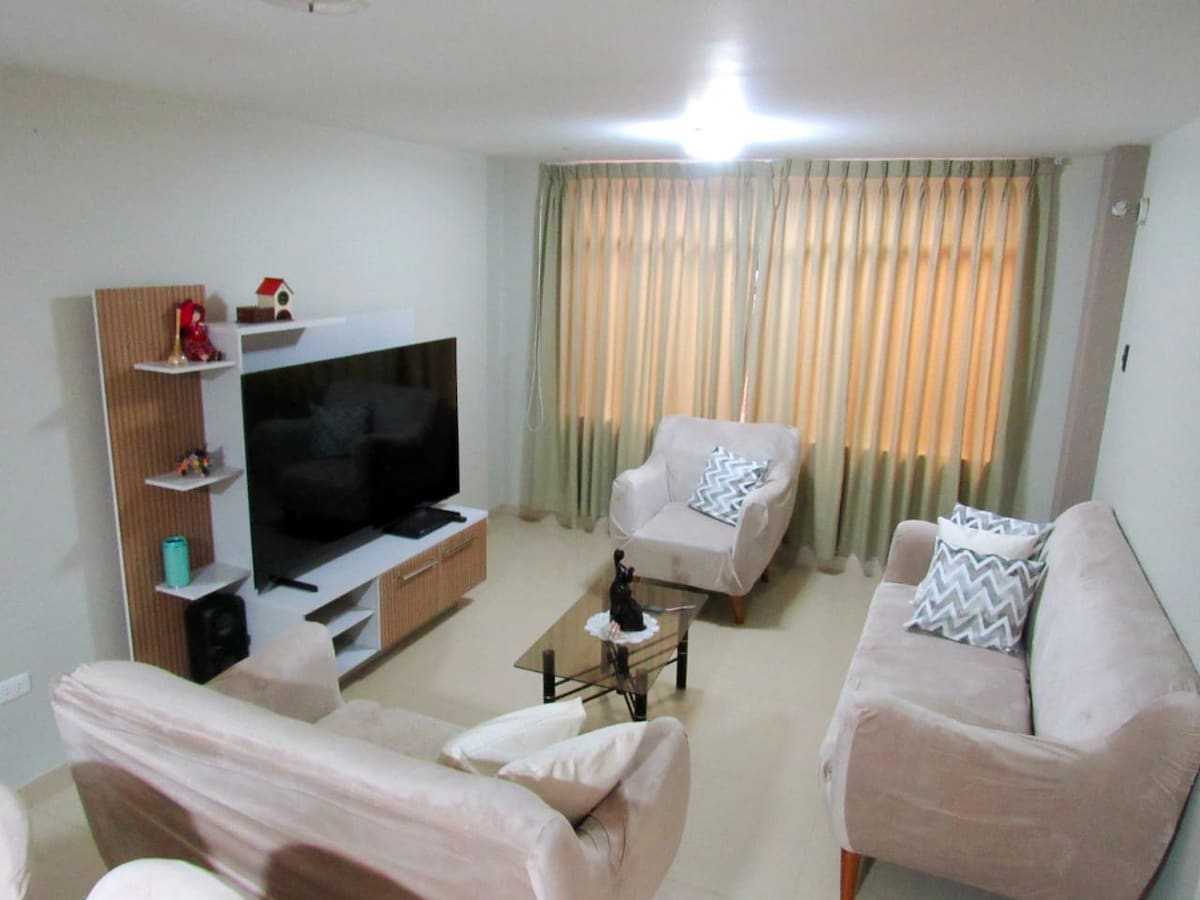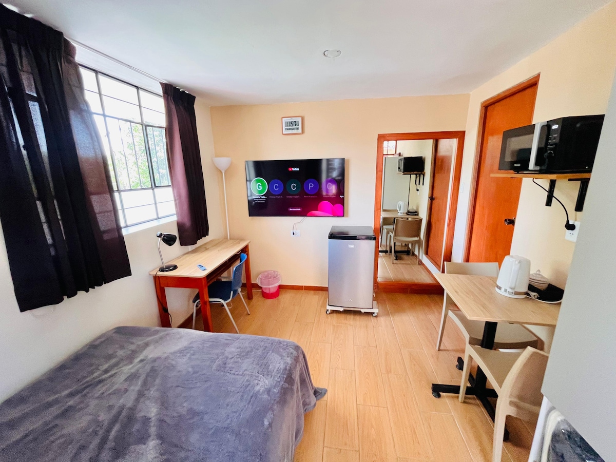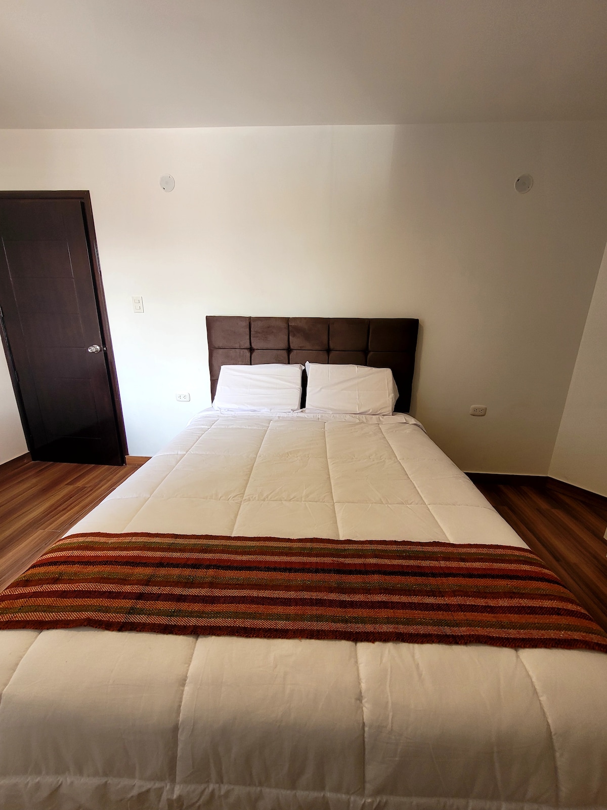 Hermoso MiniDepartamento totalmente amueblado, recientemente remodelado, perfecto para viajeros de negocios, parejas o viajeros solos. Ubicado en el tercer piso, zona residencial segura de Cajamarca, video vigilancia permanente. Cama de dos plazas, ropa de cama fresca, sábanas de 200 hilos 100% algodón, sofá, escritorio, TV + Netflix, Wifi, mesa y sillas, la cocina incluye utensilios y cubiertos, variedad de artefactos, jarra filtradora de agua alcalina. Baño independiente y walking closet.