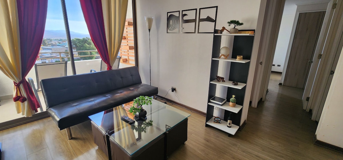 Disfruta de la sencillez de este alojamiento tranquilo y céntrico en la ciudad de Calama. Frente a él, un gran centro comercial con supermercados, farmacias, restaurantes, y otros. Renovado para entregar la comodidad y elementos que un huésped necesita. Estacionamiento privado incluído, spa, piscina, quincho, gimnasio y lavandería son los servicios que ofrece el edificio con reserva previa (cerrado los lunes por mantención en instalaciones, se debe pagar por el uso, no incluye detergente)