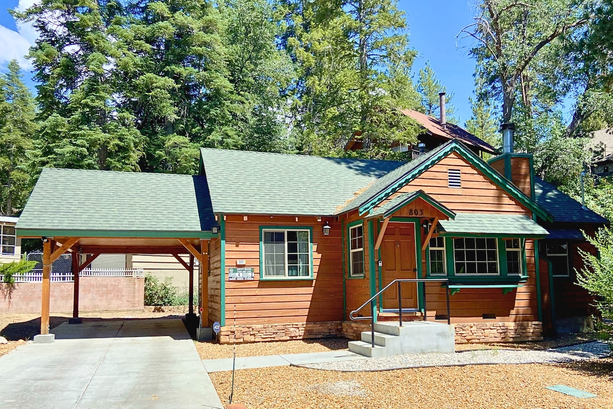 Our family cabin is located in the heart of lower Moonridge, just a short drive to the lake, village shopping, zoo, and many more attractions. Nestled in a quiet neighborhood surrounded by trees, the back of our property borders San Bernardino National Forest hiking and biking trails. This is a perfect getaway with the ambiance of a mountain cabin in the woods, pet friendly, with modern features like WiFi, TV and access to multiple streaming services, and of course, a wood burning fireplace.