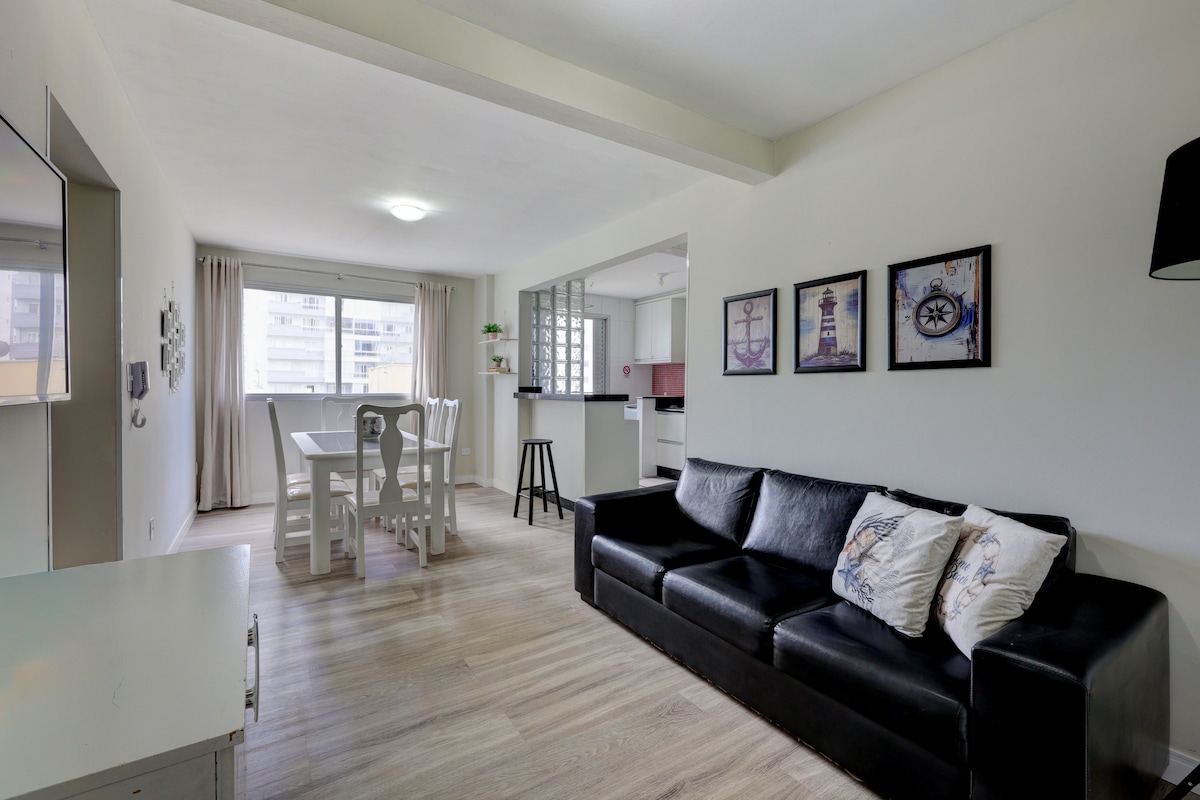 Bem-vindo ao Apê Bossa Nova! Um apartamento amplo, com jeito de casa. A apenas 200m do mar de Balneário Camboriú, ele oferece 2 quartos (sendo 1 suíte) e um terraço com espaço gourmet recém-inaugurado. Perfeito para quem ama um bom churrasco, pois são duas churrasqueiras: uma a gás (terraço) e uma a carvão (cozinha interna), pra churrasqueiro nenhum botar defeito. Tudo isso em um ambiente moderno e bem decorado.