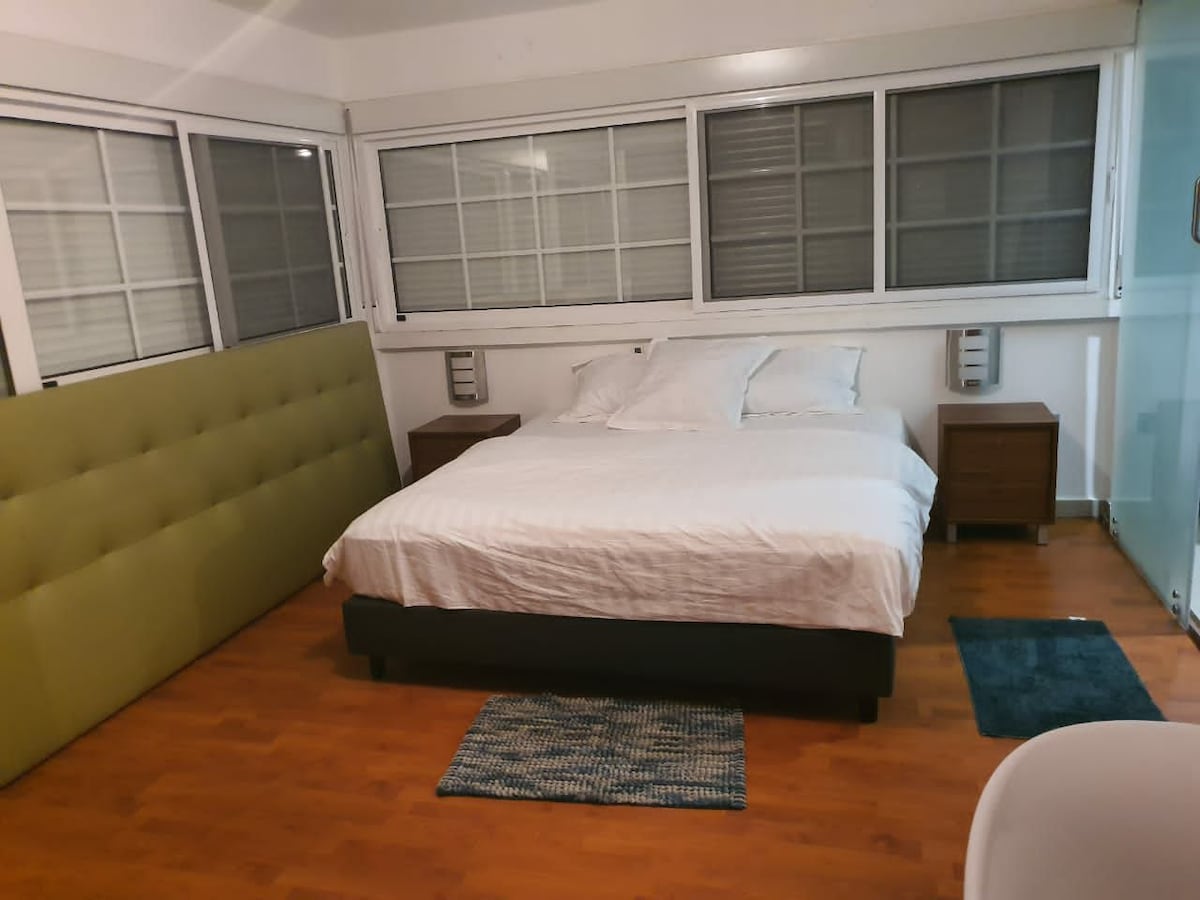 Loft chic dans un nouvel immeuble situé au coeur du centre de Yaoundé. Magnifique vue depuis une très grande terrasse. Un open space avec un lit double, une douche moderne. Dans le même immeuble location possible d'un duplex avec 4 chambres.
