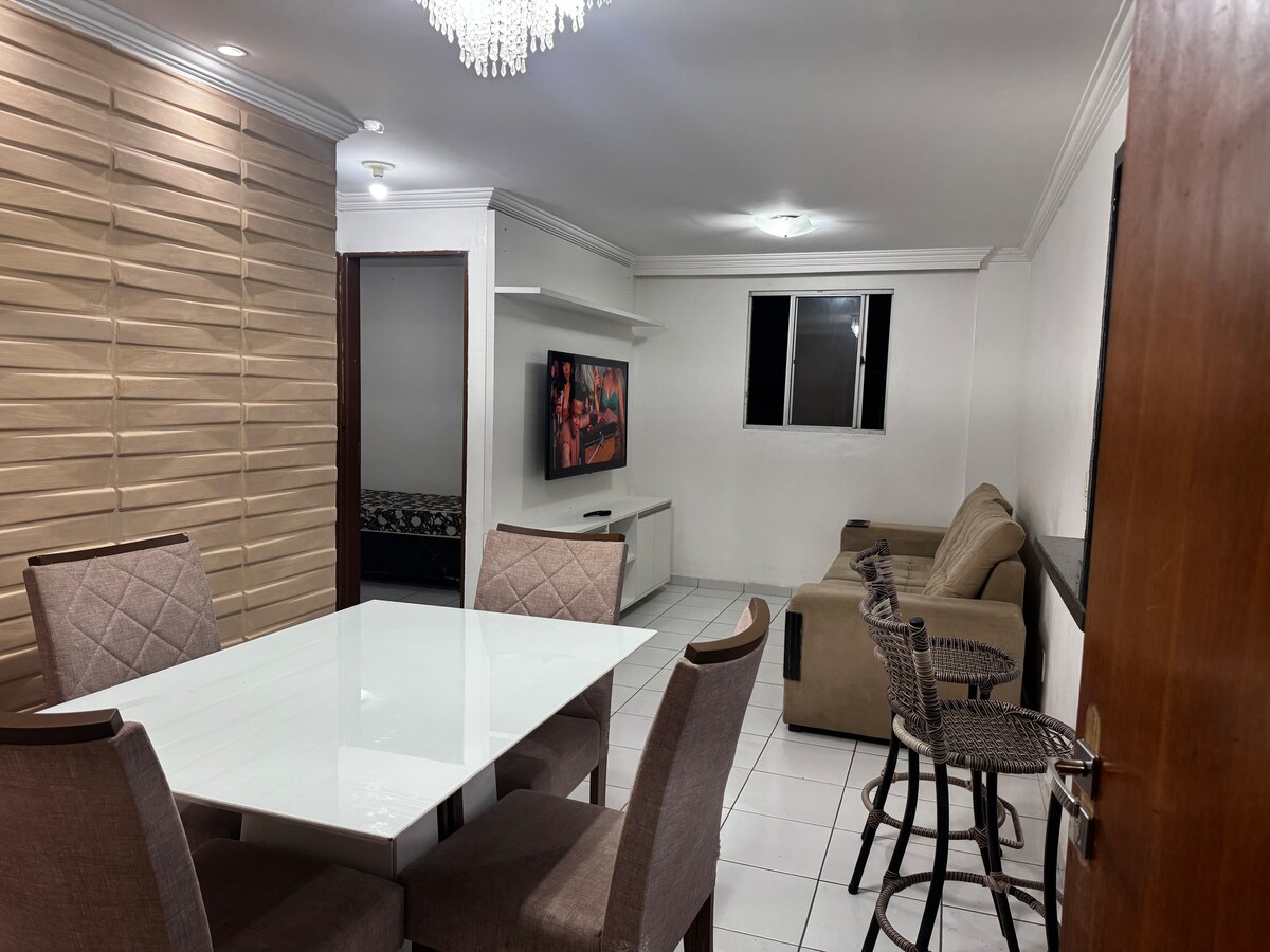 Sua família vai estar perto de tudo. Temos cercadinho para seu bebê, apt completo com 2 qrts, 1 suíte, 2 wc, CHUVEIRO ELÉTRICO em todos os banheiros, garagem coberta, guarita elevada com proteção 24h, rede de proteção em todas a janelas, cozinha completamente equipada, AR CONDICIONADO EM TODOS OS QUARTOS, internet de 600mb, TV com Netflix, Prime Vídeo e Globo play liberados, academia completa, salão de jogos com sinuca, xadrez, damas e air hockey, brinquedoteca equipada e quadra poliesportiva.