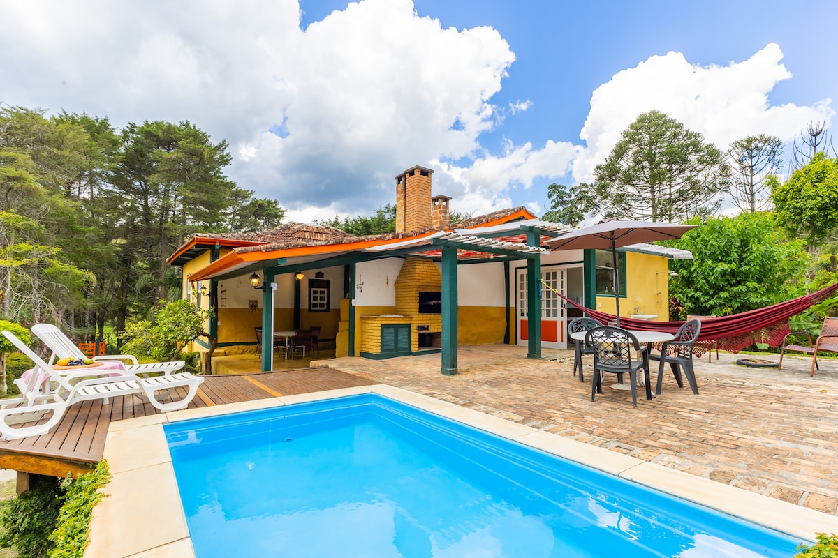 Casa Pinho Bravo - Charmosa casa de campo localizada dentro de uma reserva florestal, com vegetação nativa, lagos e flores.... Fica no caminho do horto florestal, a 10 minutos do centro do Capivari. A casa tem lareira na sala e ar condicionado quente/frio nos três dormitórios. Churrasqueira em área externa e muito verde! Como cortesia disponibilizamos lenha para a lareira. Fica dentro do Residencial Granville, com portaria 24 horas