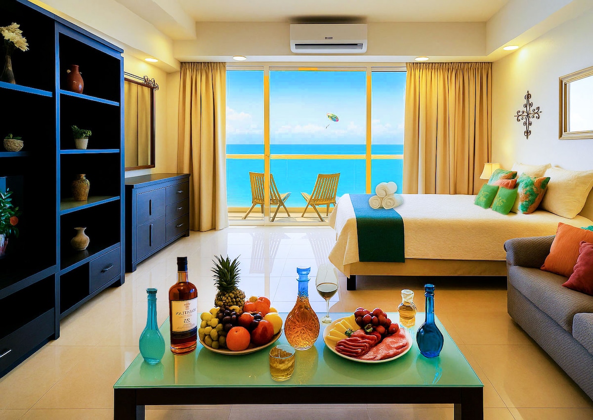 Okay, imagine this: You wake up, open your eyes, and BOOM: the Caribbean Sea is there, a beautiful blue, gorgeous, like it's flirting with you. You go downstairs and you're literally on the best beach in Cancun (It wins awards every year for being beautiful and clean… unlike your ex ever was). You're in the heart of the Hotel Zone: — Coco Bongo a few steps away, Mandala to keep the party going — Chedraui Selección to survive — Tours, rentals, tacos, birria, hot guys and girls, and a global vibe.
